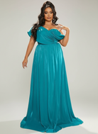 Plus Size One Shoulder A-Line Emerald Blue Bridesmaid Dress PXL079