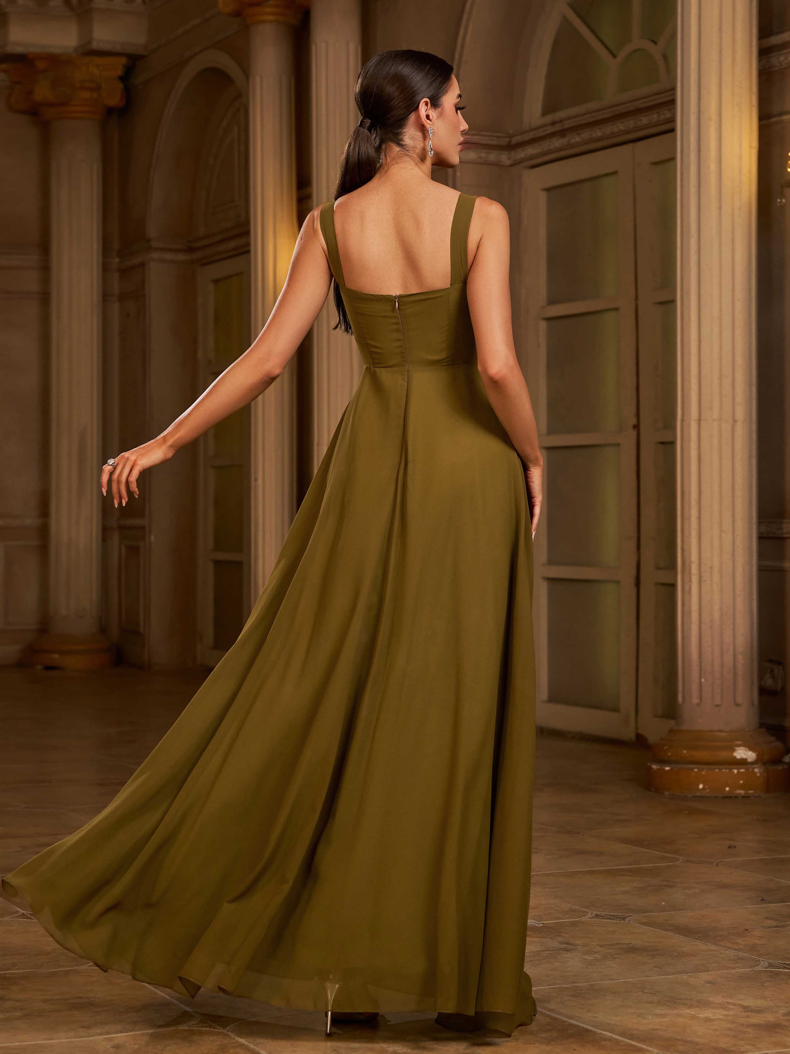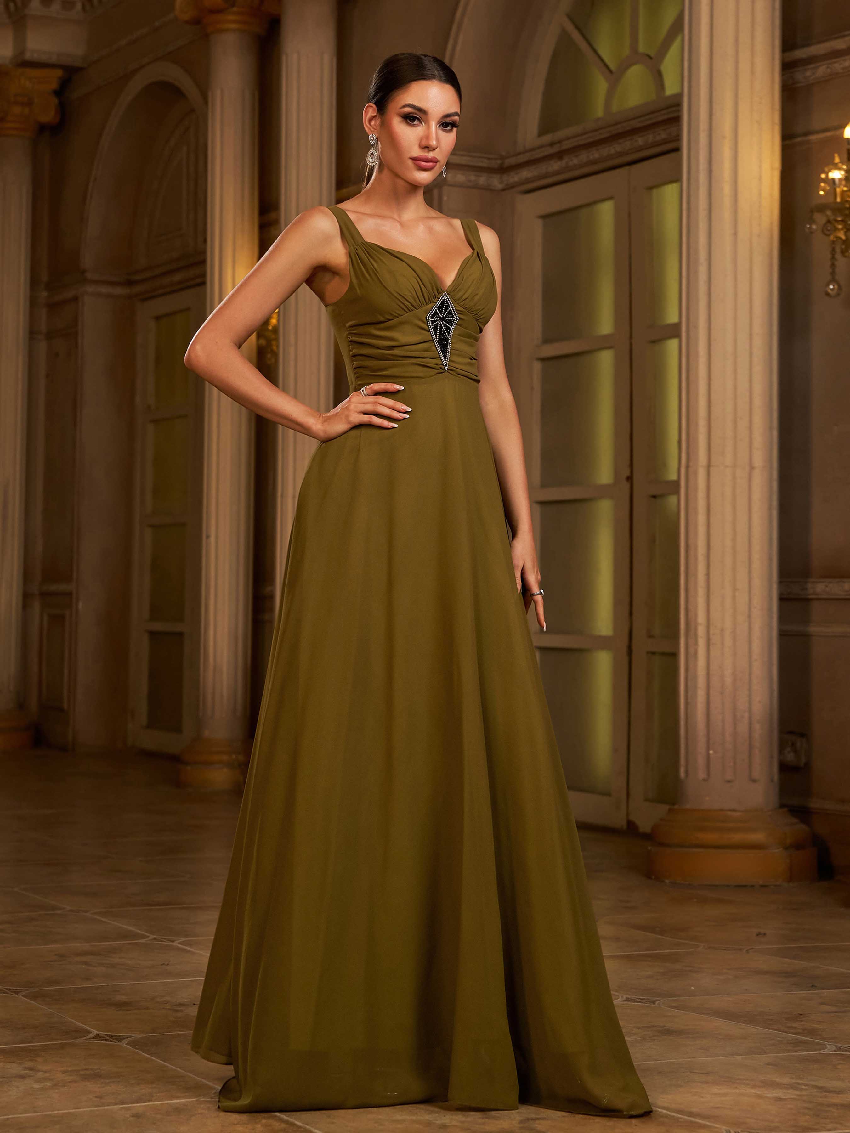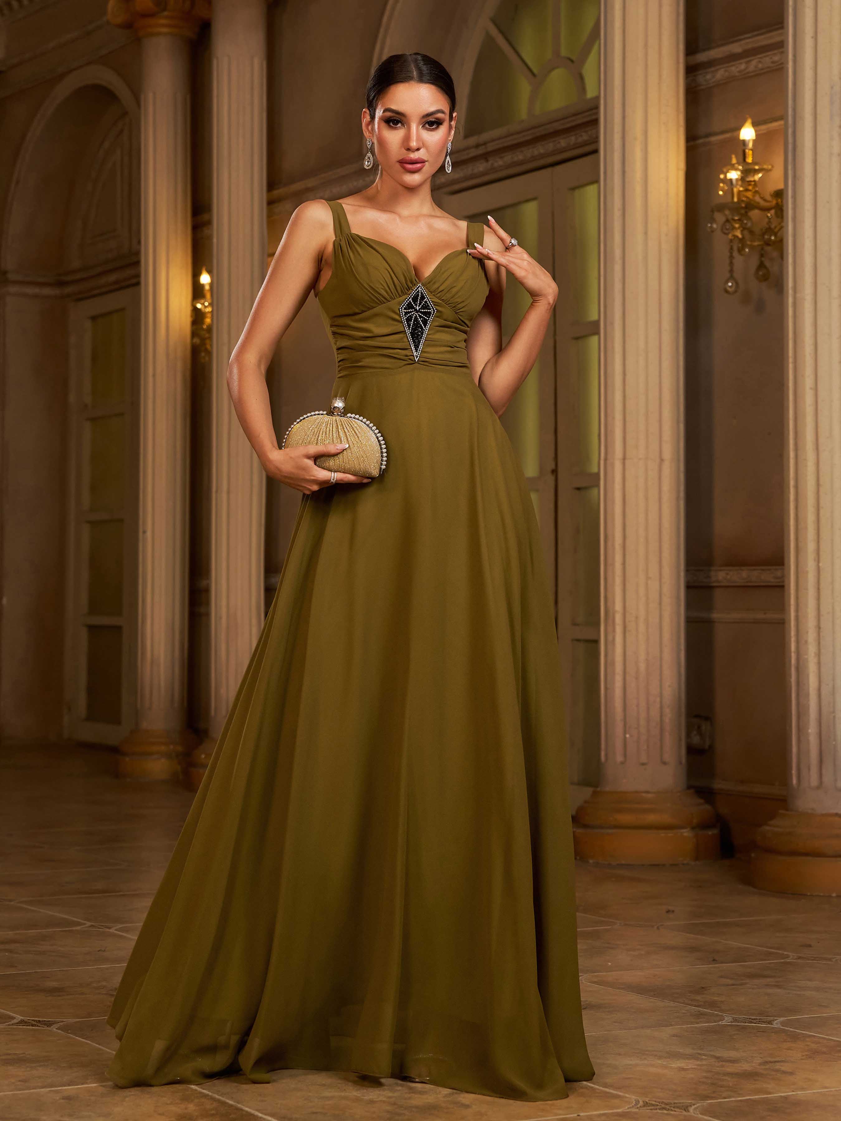 Olive Rhinestone A-line Swing Prom Dress RJ12142