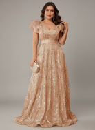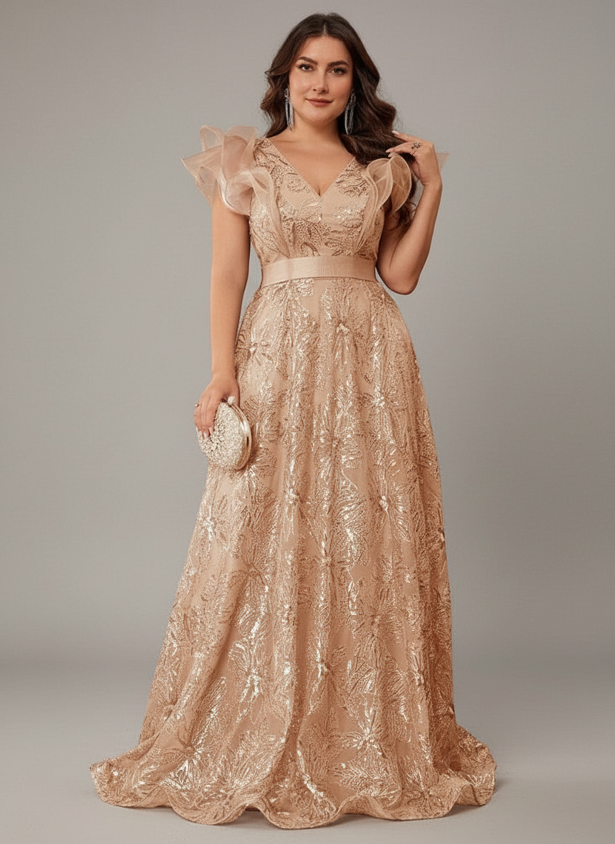 Plus Organza Flutter Sleeve Sequin Tulle Ball Gown PXF25140