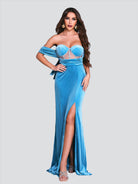 Corset Off Shoulder Velvet Prom Dress XH2387