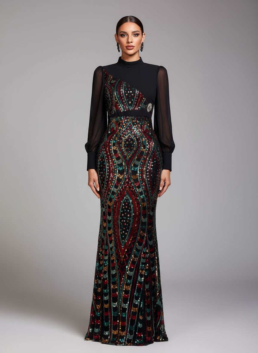 Multicolor Sequin Graphic Elegant Prom Dress SL30079
