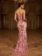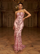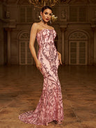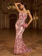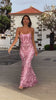 This formal strapless sequin pink prom dress is designed with a signature mermaid silhouette and features sparkling sequins for an alluring look.