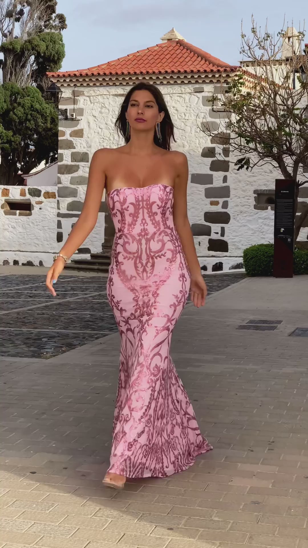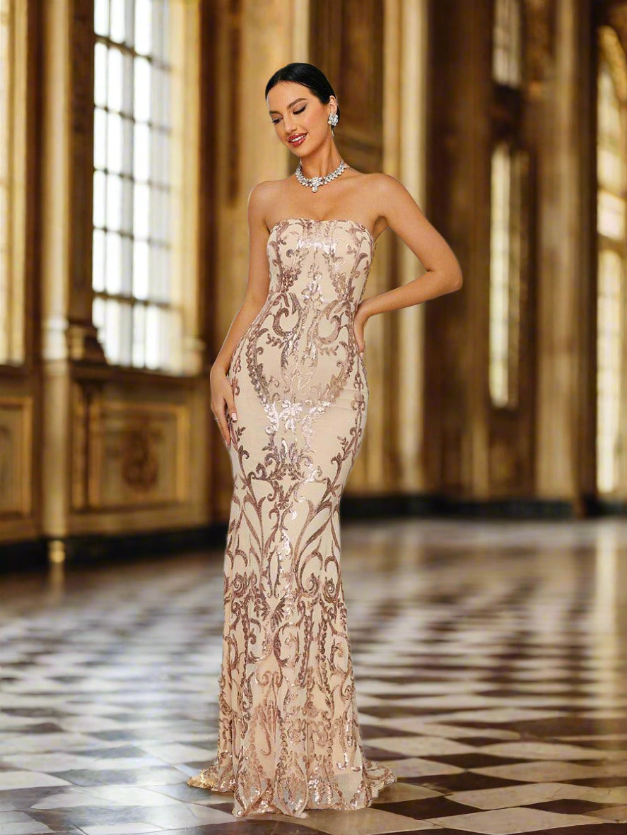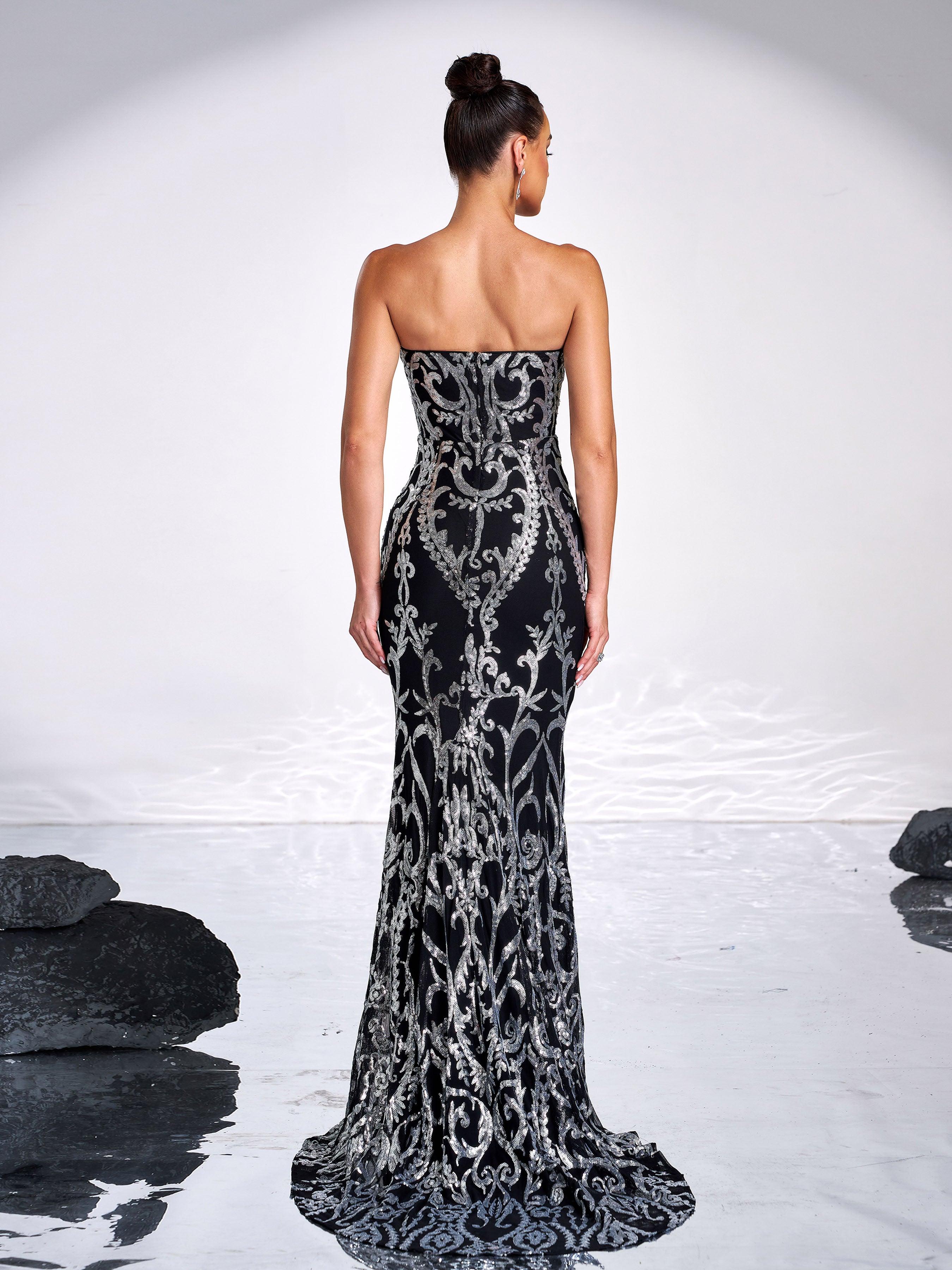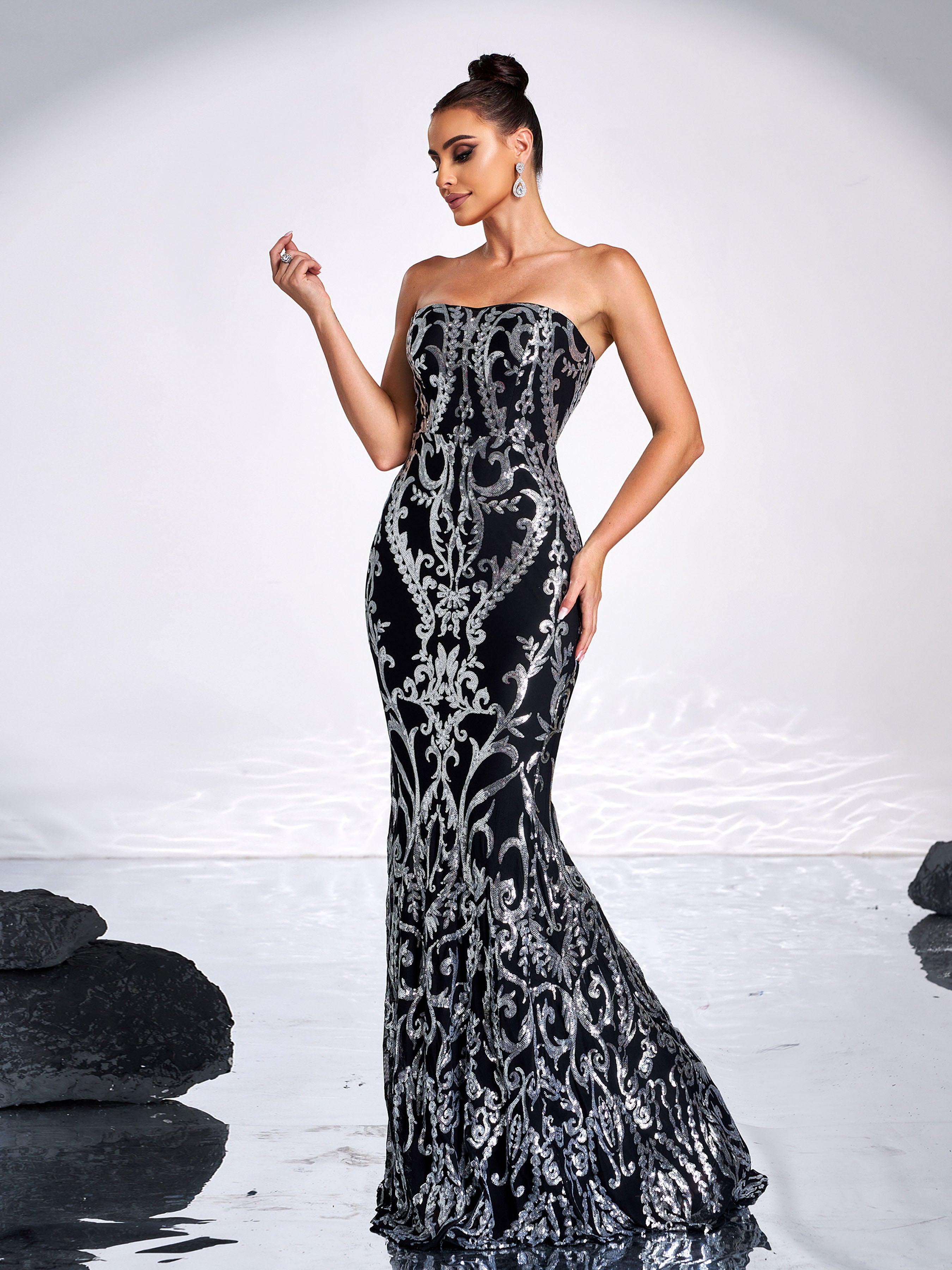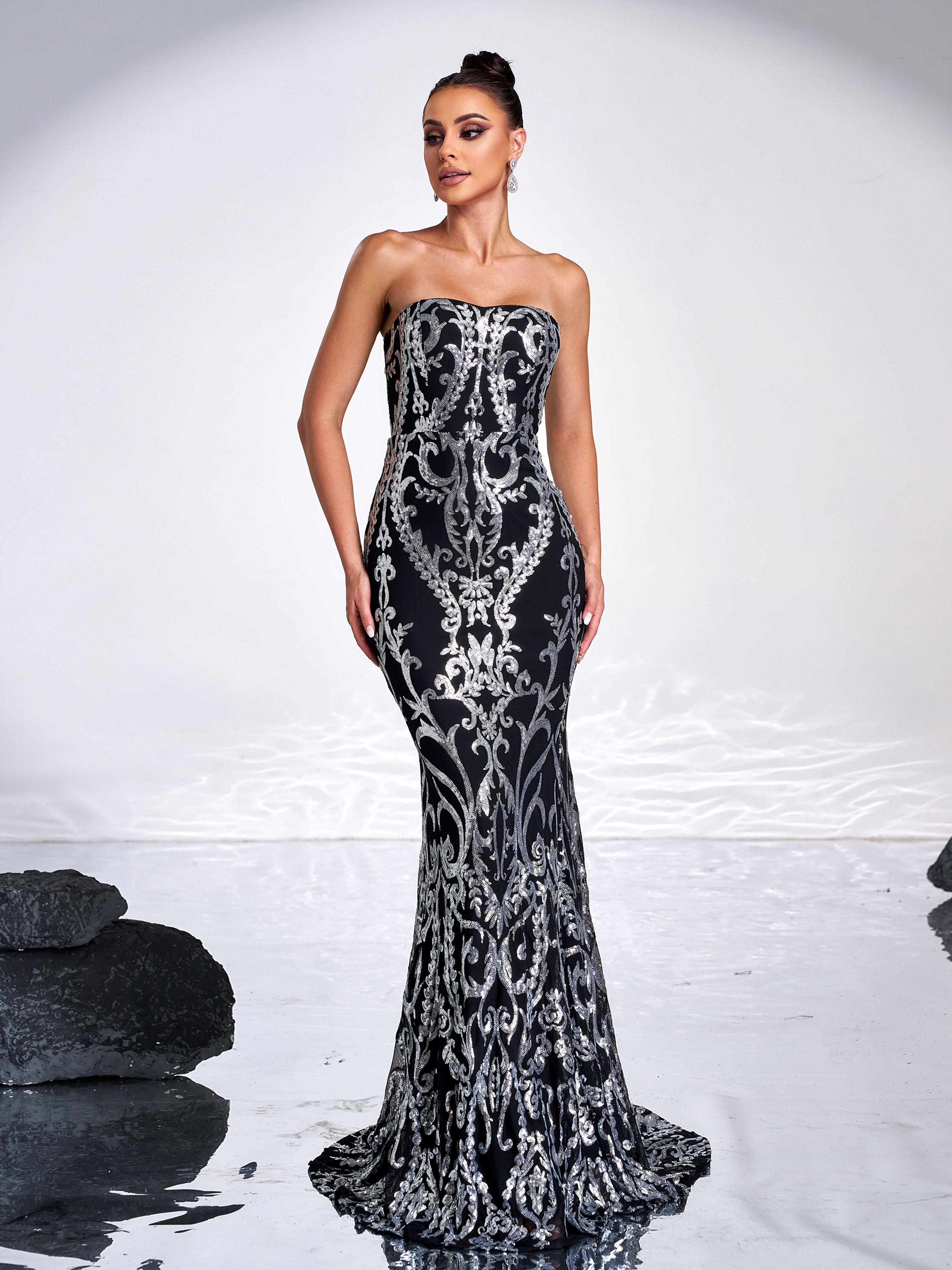 Strapless Mermaid Sequin Maxi Dress XH1342