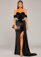 Off Shoulder High Split Velvet Dress XH1779