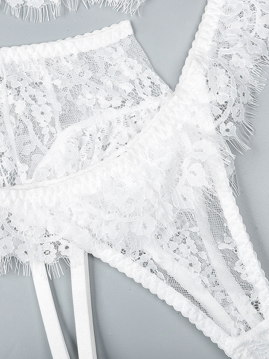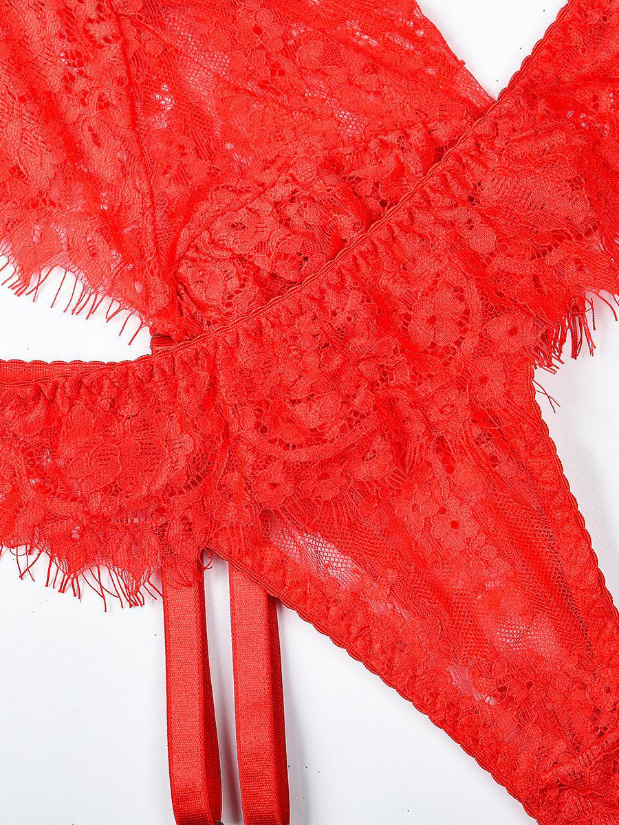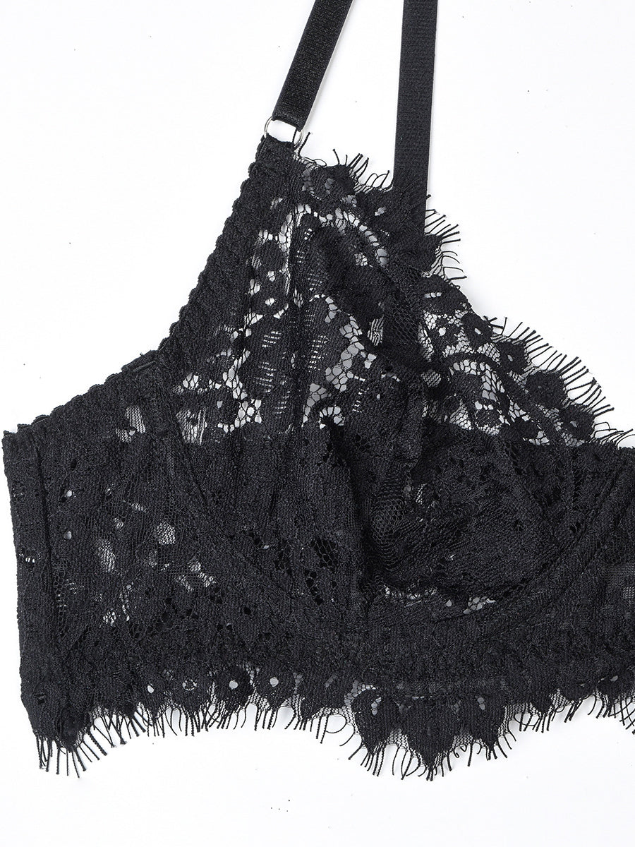 Black Lace Embroidered Ruffled Cutout Sexy Set MSL096