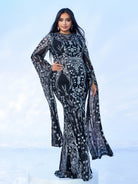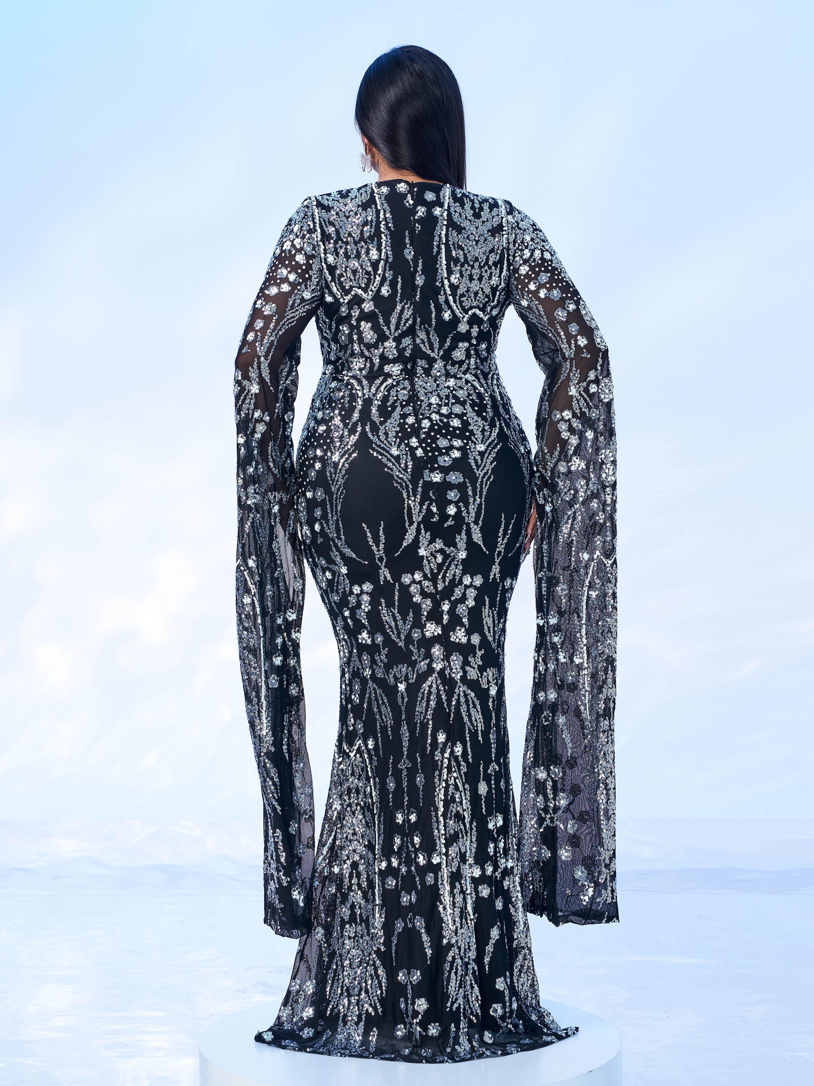 Plus Long Sleeve Mermaid Sequin Maxi Dress PMES00404