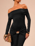 Off Shoulder Draped Long Sleeve Dress MCC1202