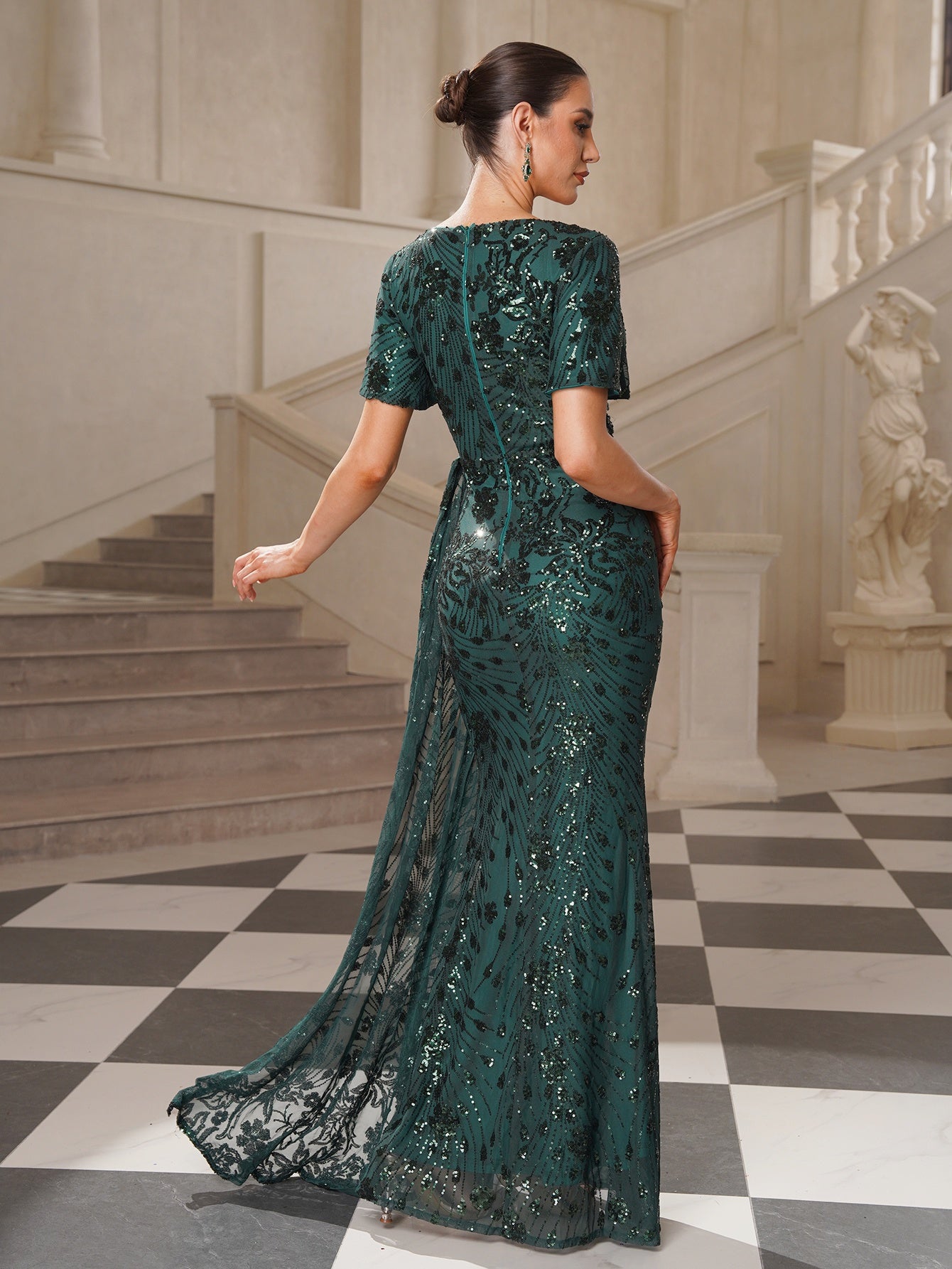 Orinthia Floral Sequin Short-Sleeve Prom Dress