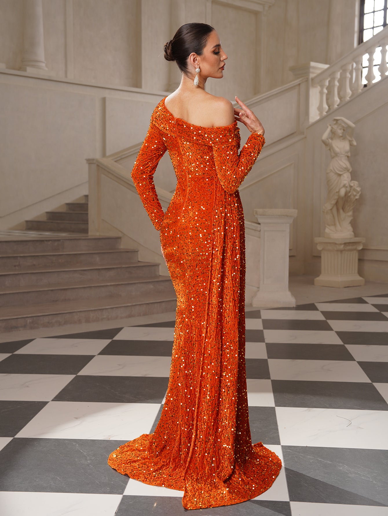 Elegant Off Shoulder Sequin Slit Formal Dress SL30195