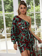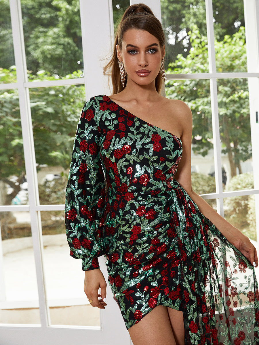 Floral One Shoulder Draped Mini Dress XJ1387