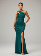 Unleash your inner fashionista with our One Shoulder Feather Cutout Split Green Formal Dress! Show off your unique style with this quirky and playful dress. Perfect for any formal occasion, this dress features a stunning one shoulder design and a fun feather cutout detail. Turn heads and make a statement with our dress!