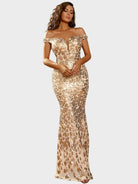 Skinny Off The Shoulder Sequin Gold Evening Dress WY91