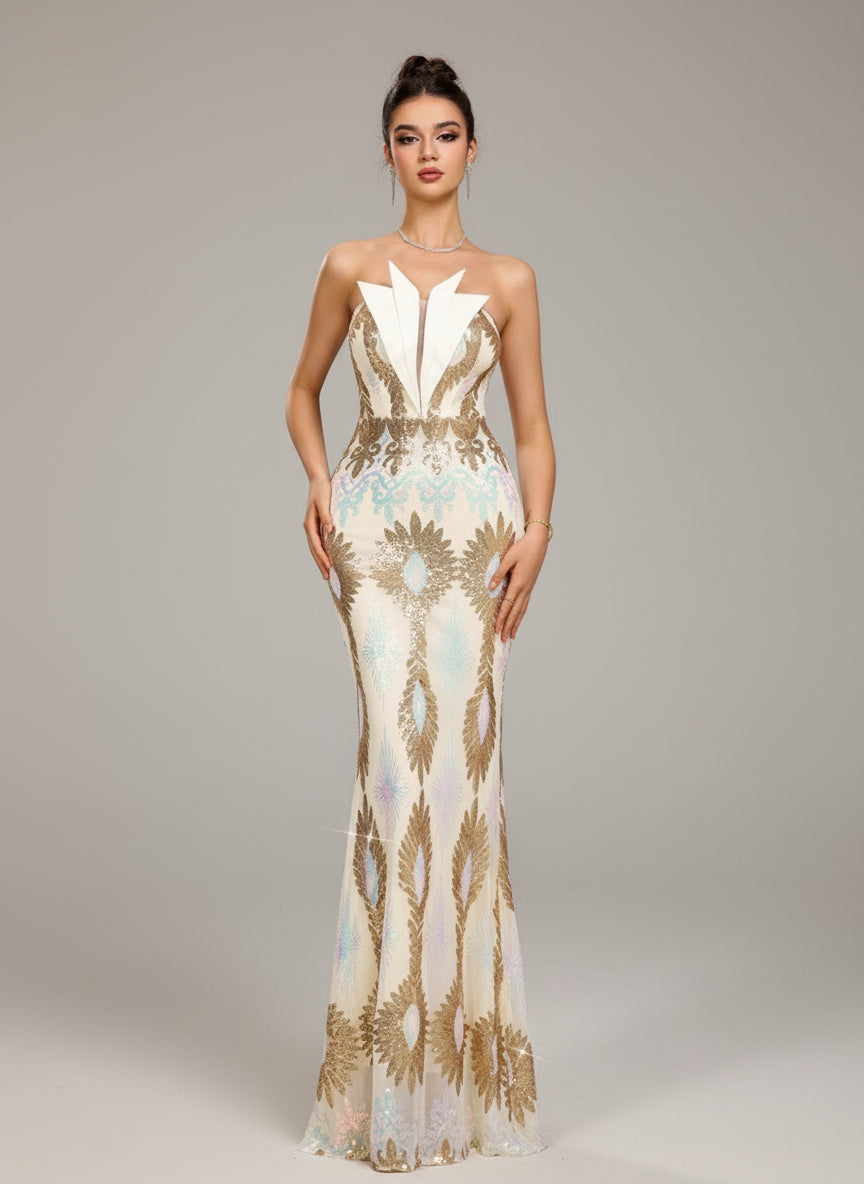 Luxury Gold Sequin Strapless Art Deco Prom Dress RX70453