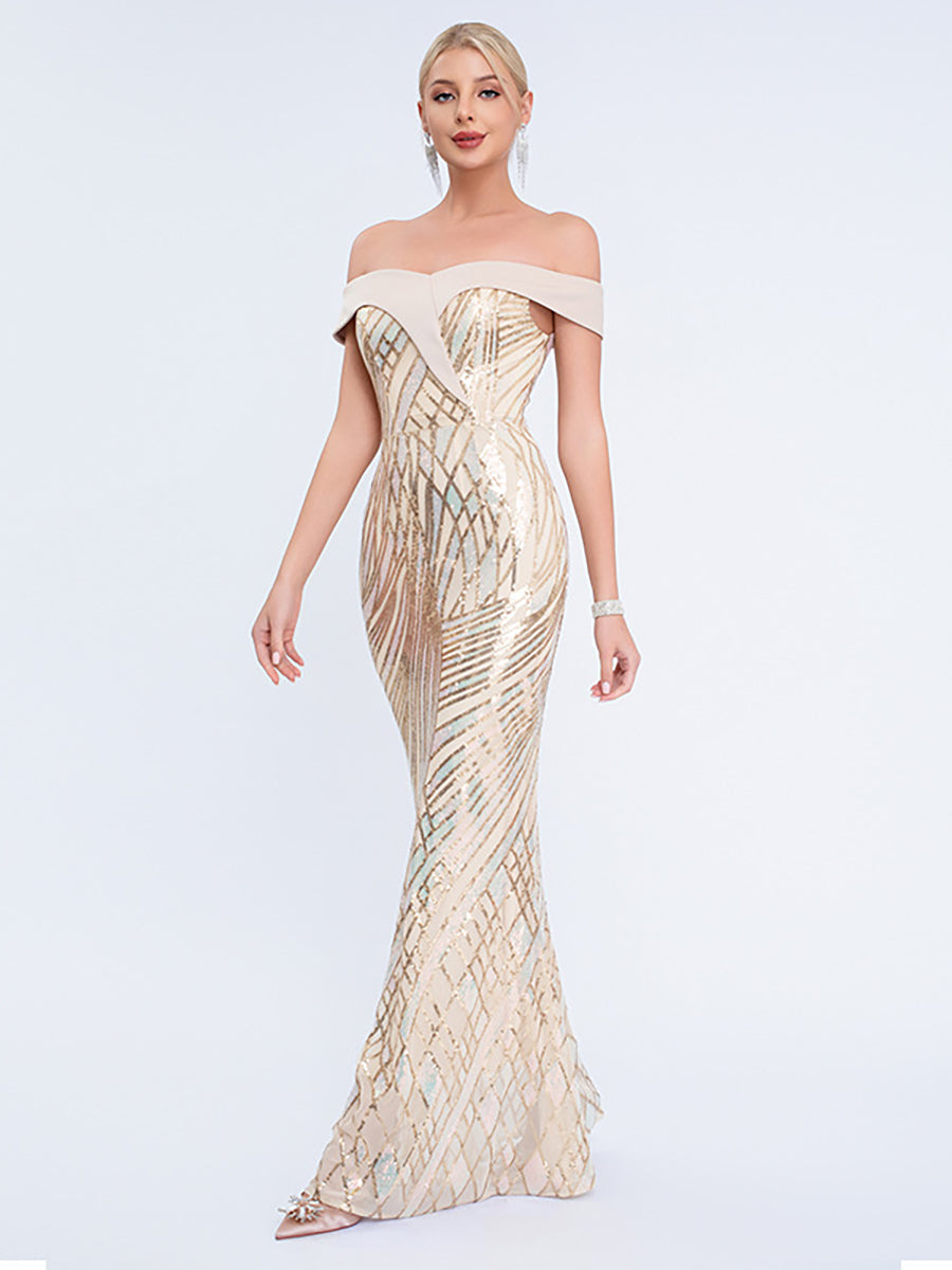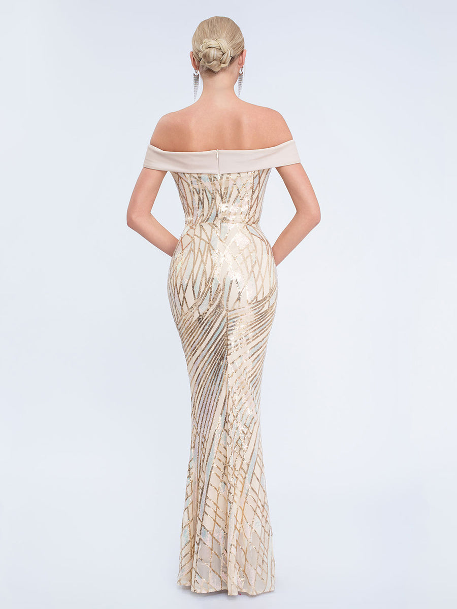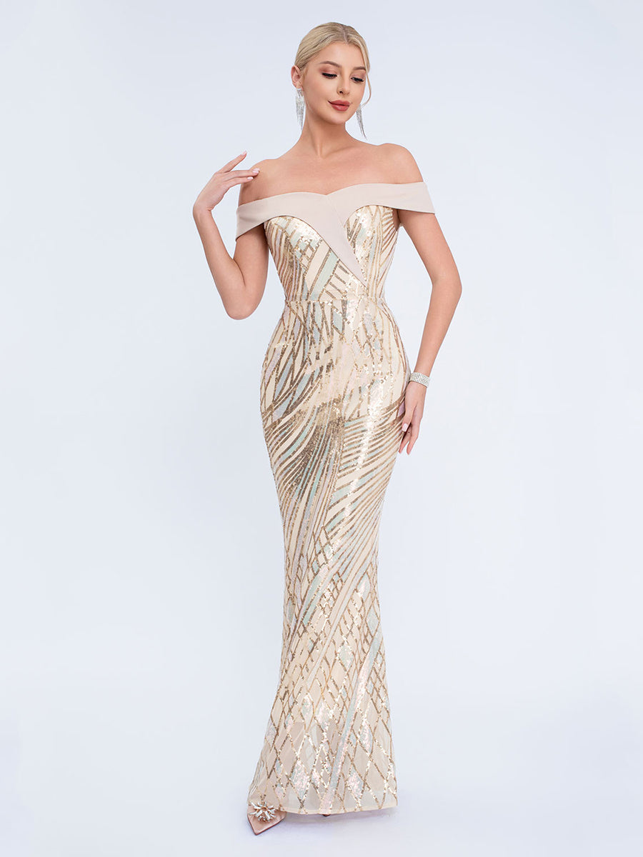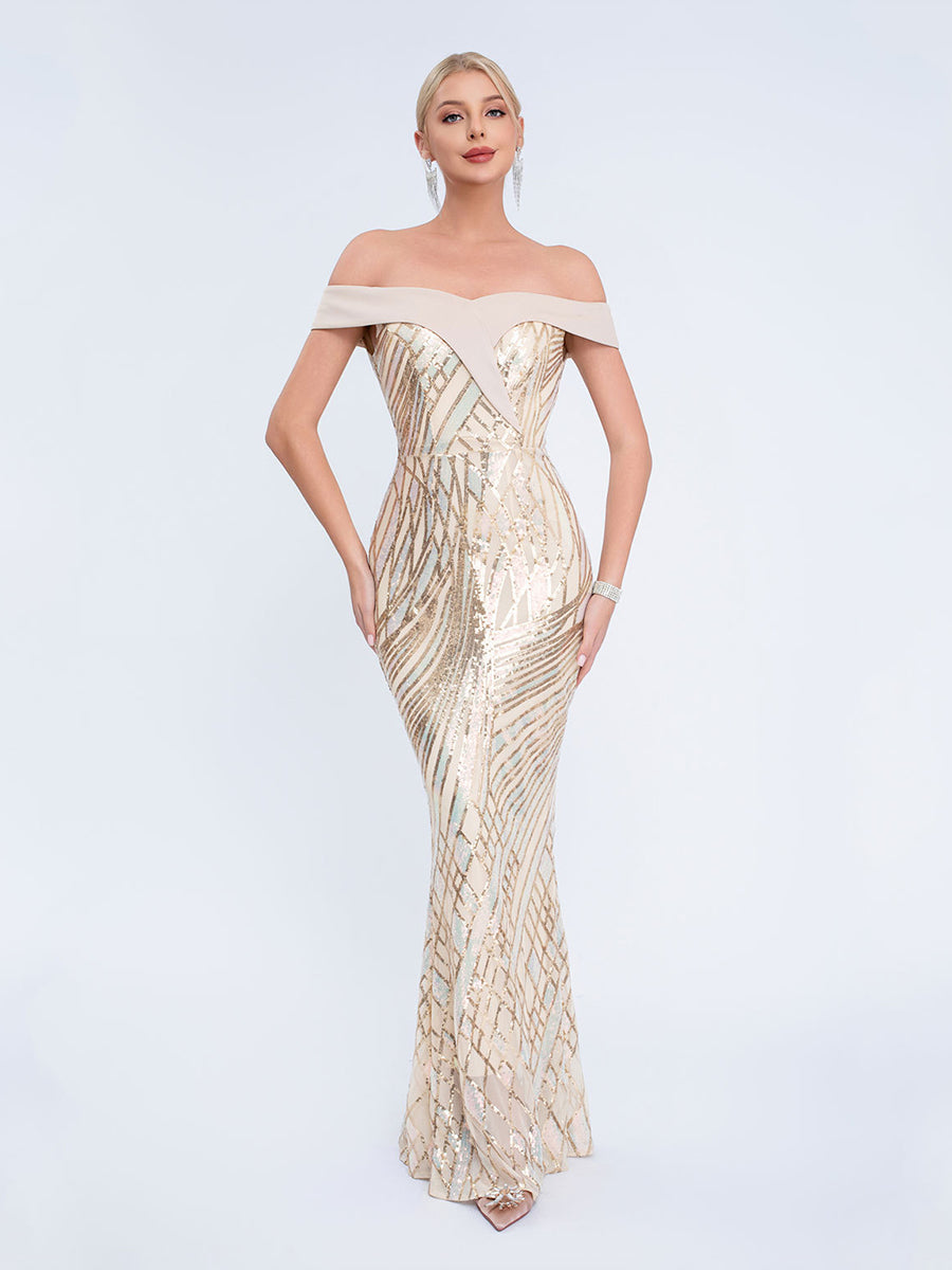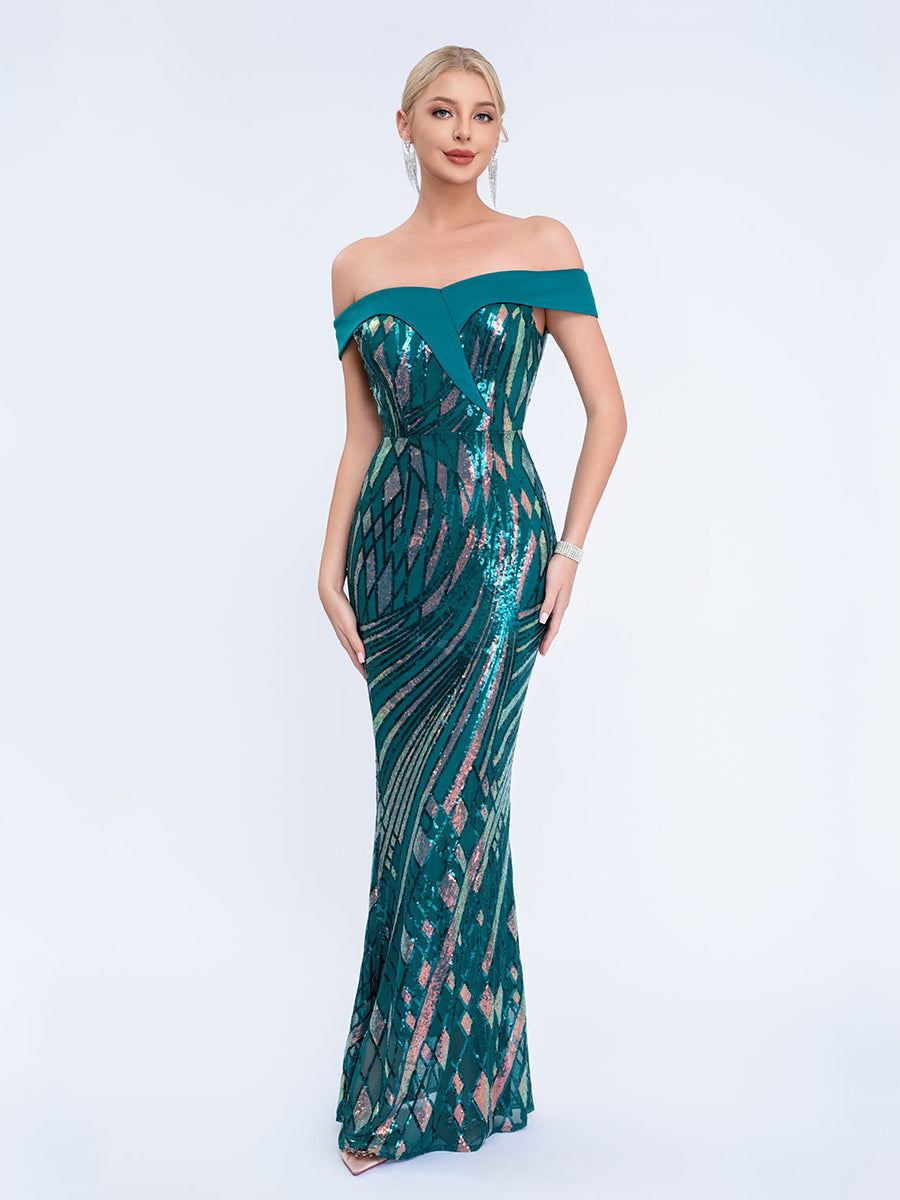 Iridescent Sequin Off-Shoulder Mermaid Formal Dress XF251279