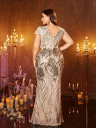 Orinthia Floral Sequin Short-Sleeve Prom Dress