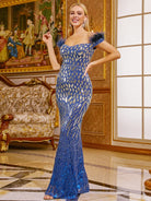 Regardez superbe dans notre épaule paillettes bleu Maxi robe de soirée. Cette élégante robe de soirée dispose d'un haut à paillettes pour une finition scintillante, avec une jupe fluide pleine longueur pour compléter le look. Cette robe est l'addition parfaite à n'importe quelle garde-robe formelle.