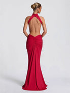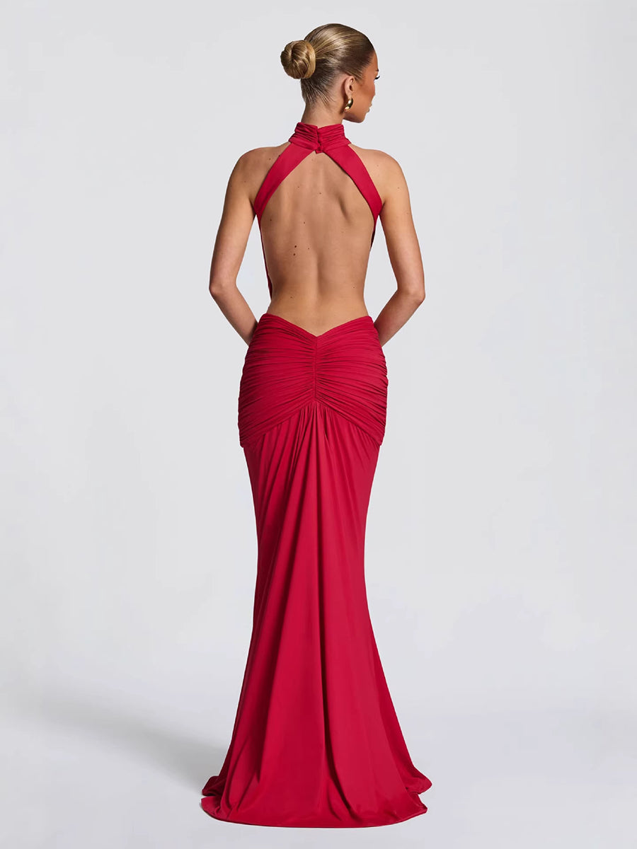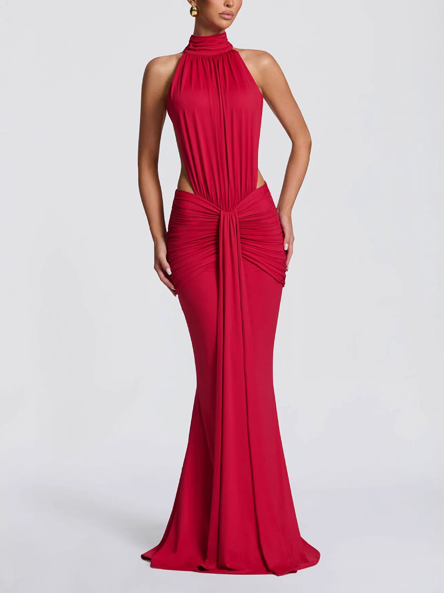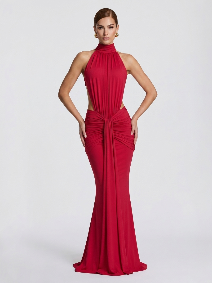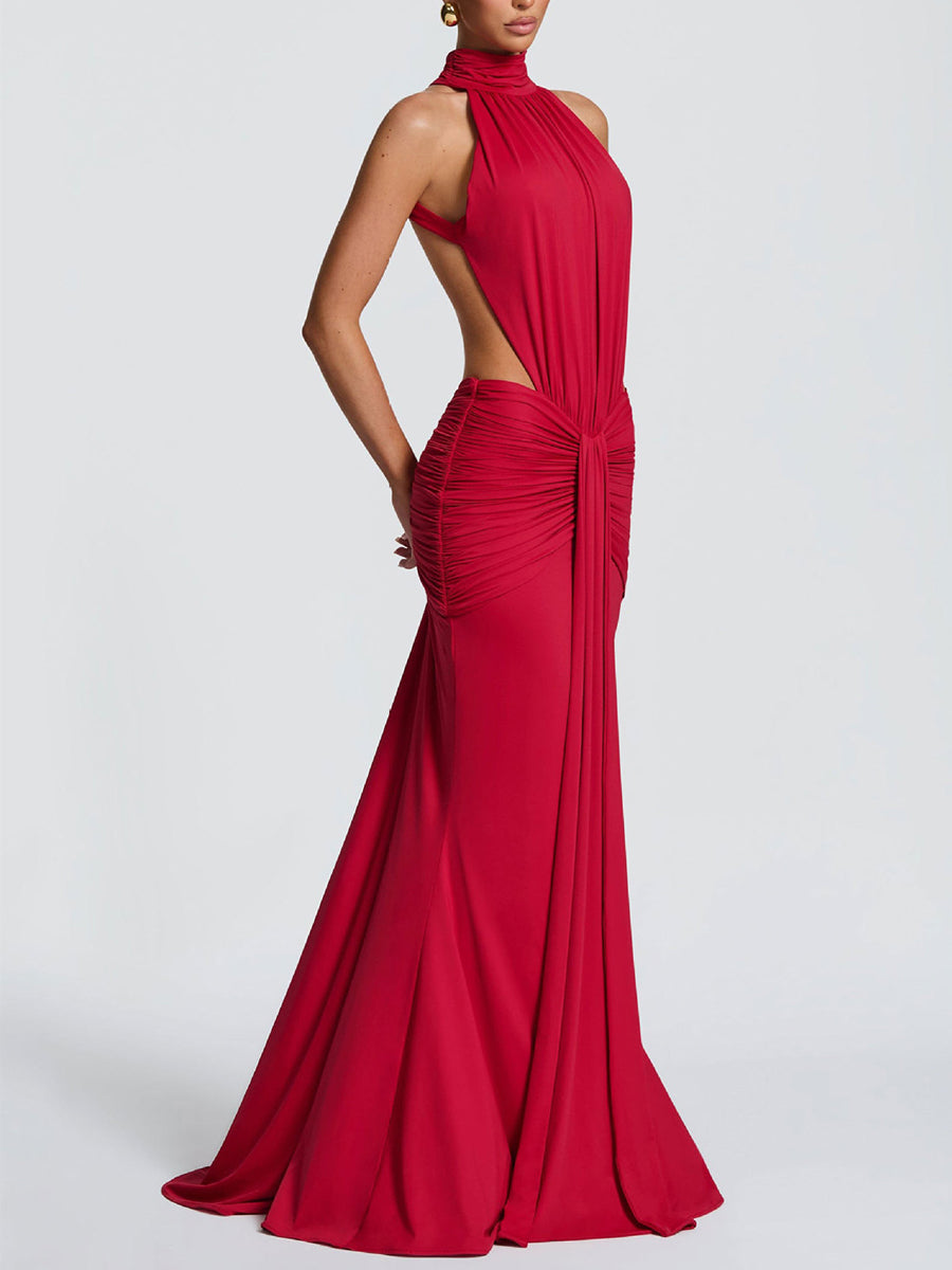 Halter Backless Cutout Ruched Mermaid Evening Dress XF251340