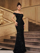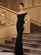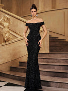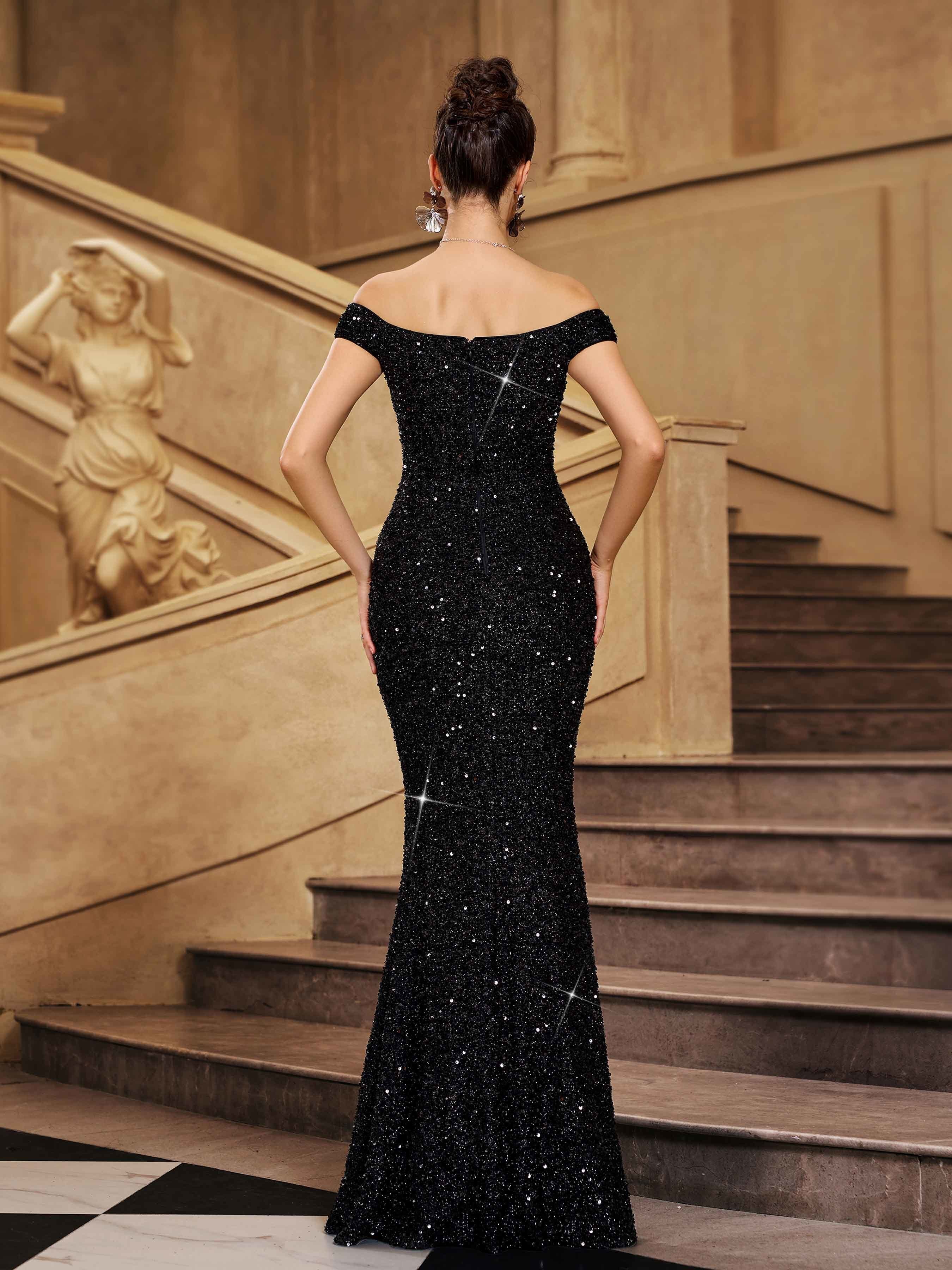 Black Off Shoulder Sequin Mermaid Cocktail Dress GM00857