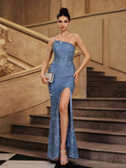 Glam One-Shoulder Sequin Slit Prom Dress GM01059