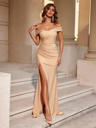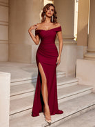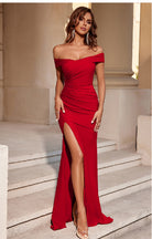 Off-Shoulder Mermaid Ruched Split Cocktail Maxi Dress XF250118
