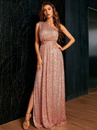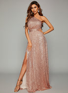 Sexy One Shoulder Sequin Maxi Prom Dress XH1732