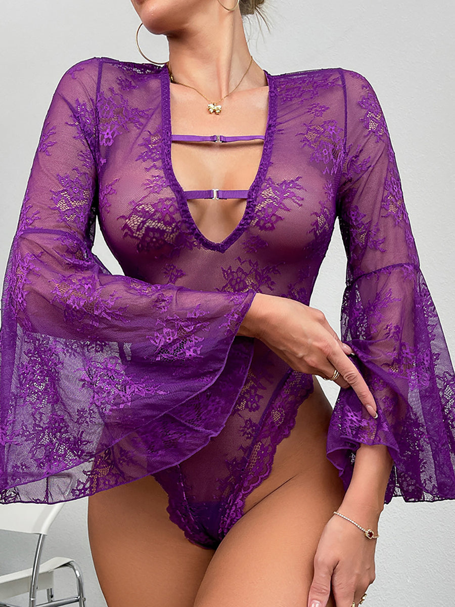 Bell Sleeve Lace See-through Bodysuit MSL114