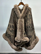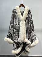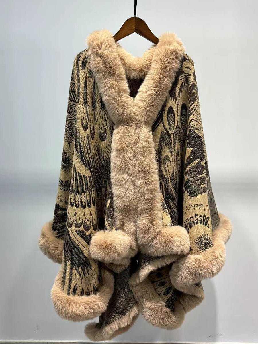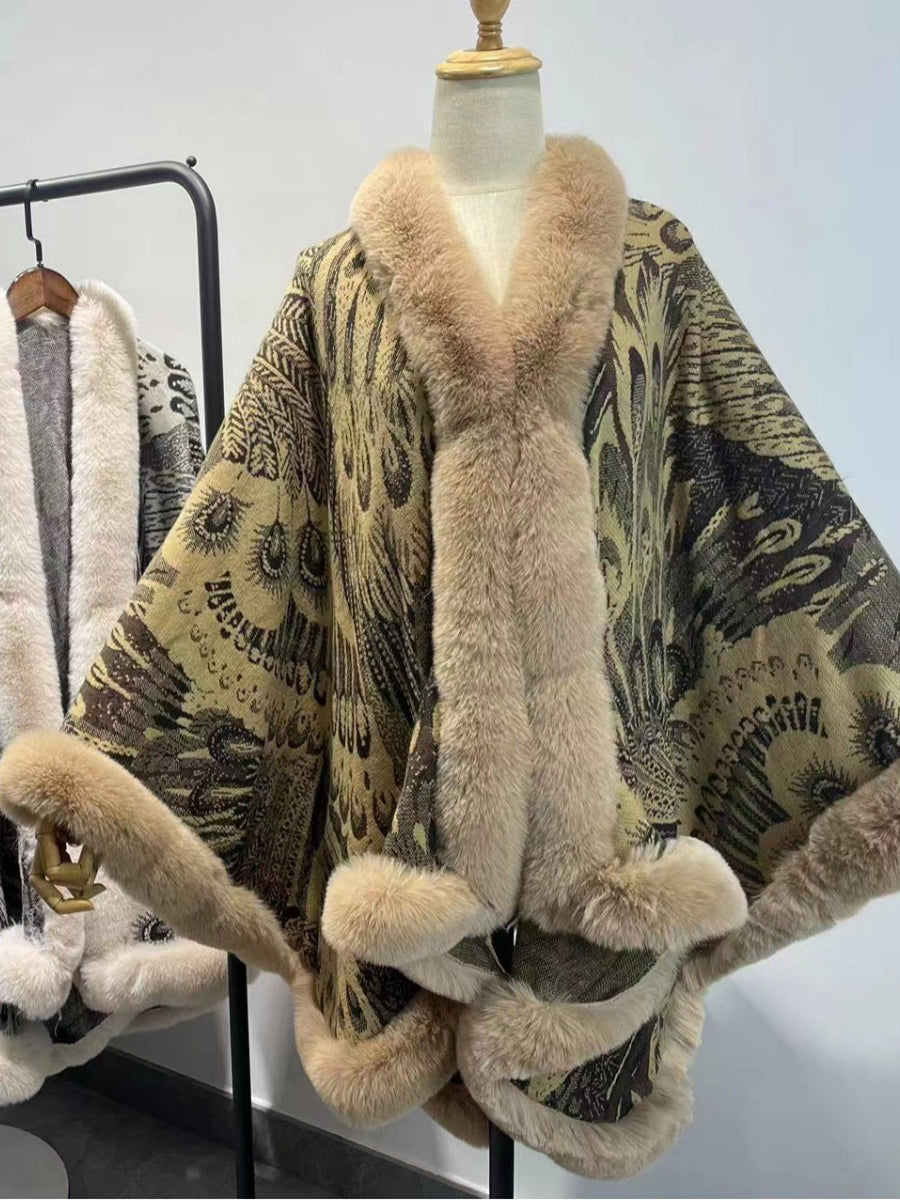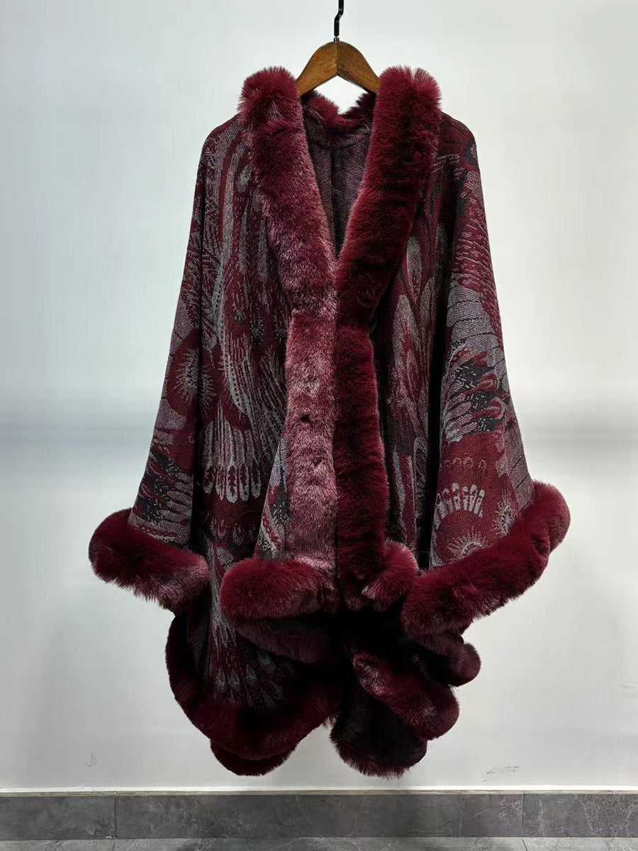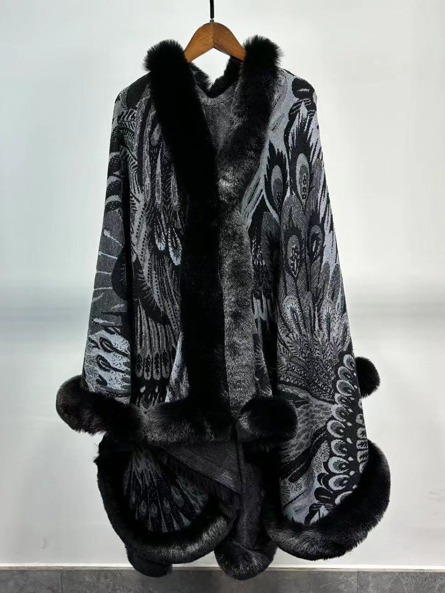 Graphic Elegant Faux Fur Trim Cape Shawl MSF038