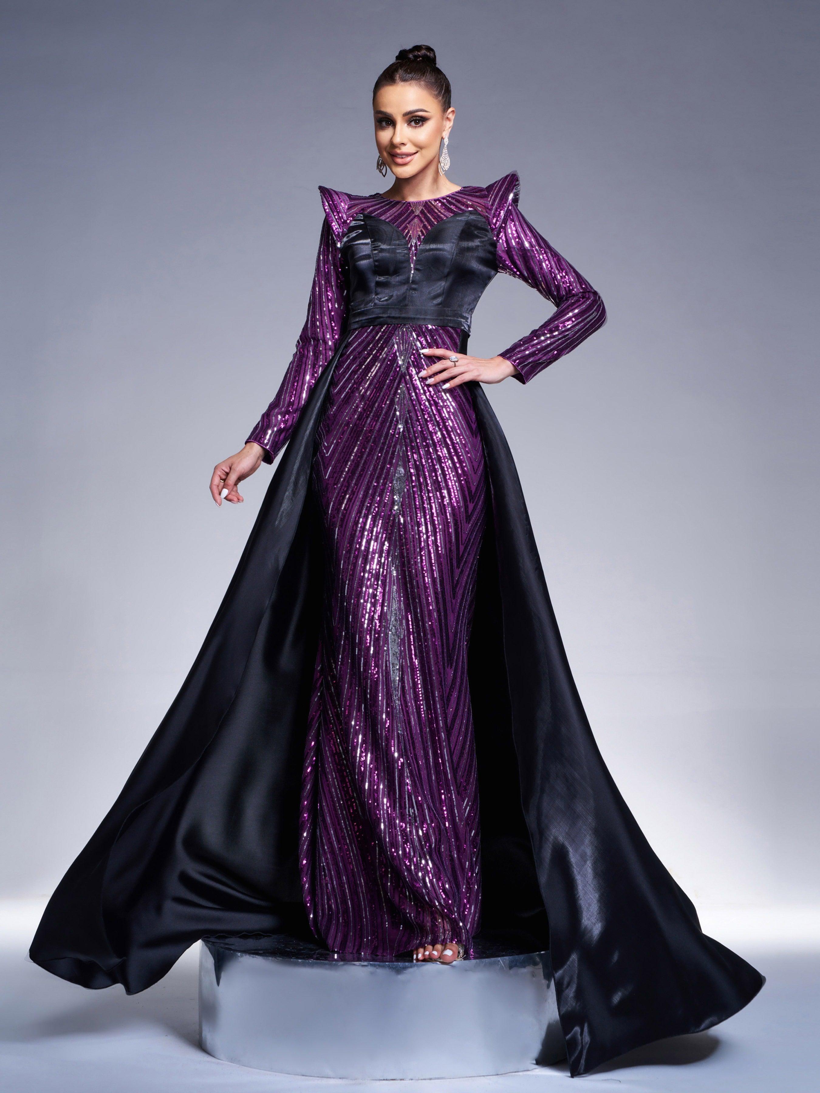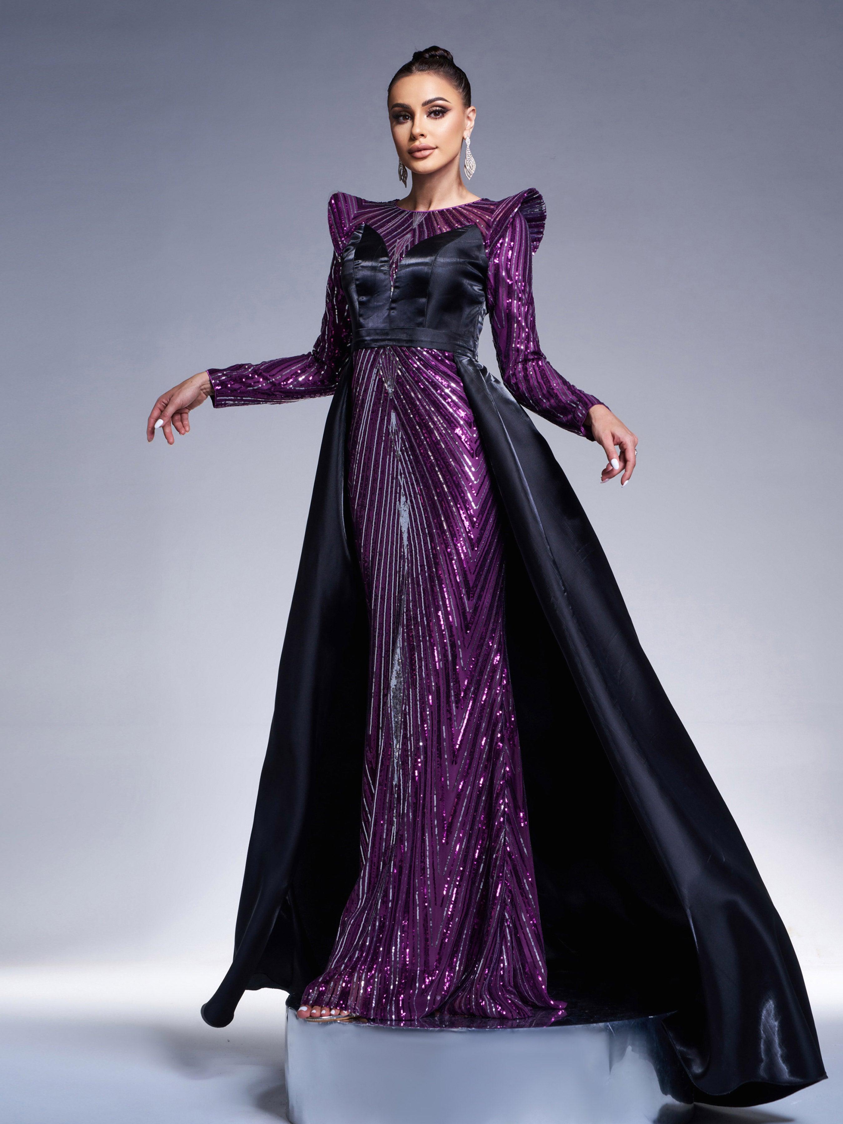 Purple Sequin Sheer Cape Evening Dress GZ60044