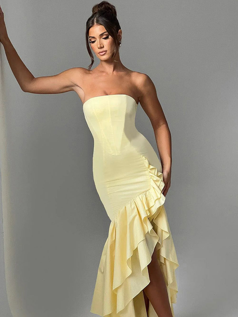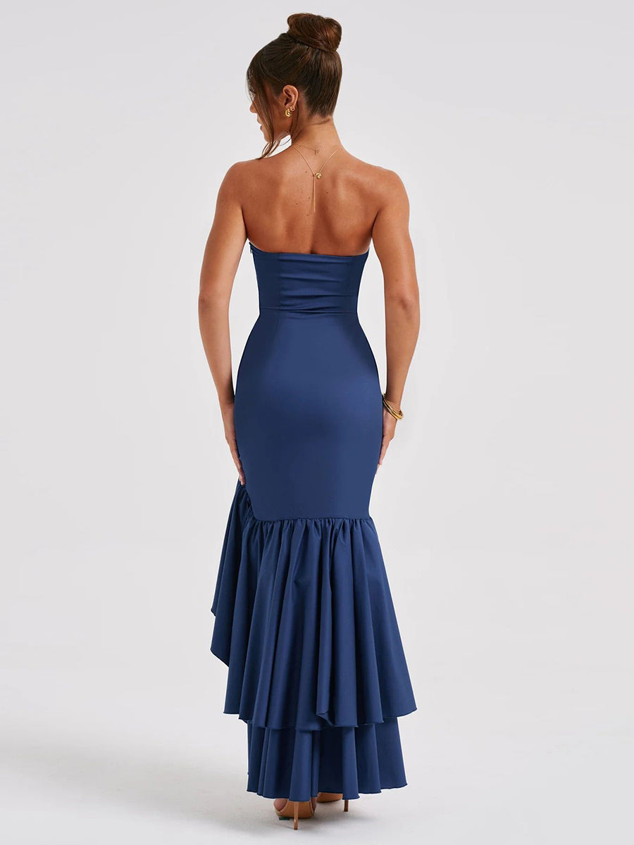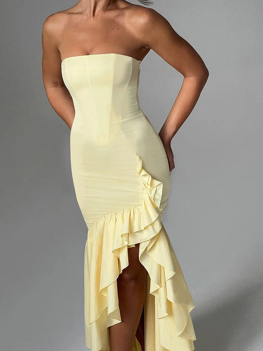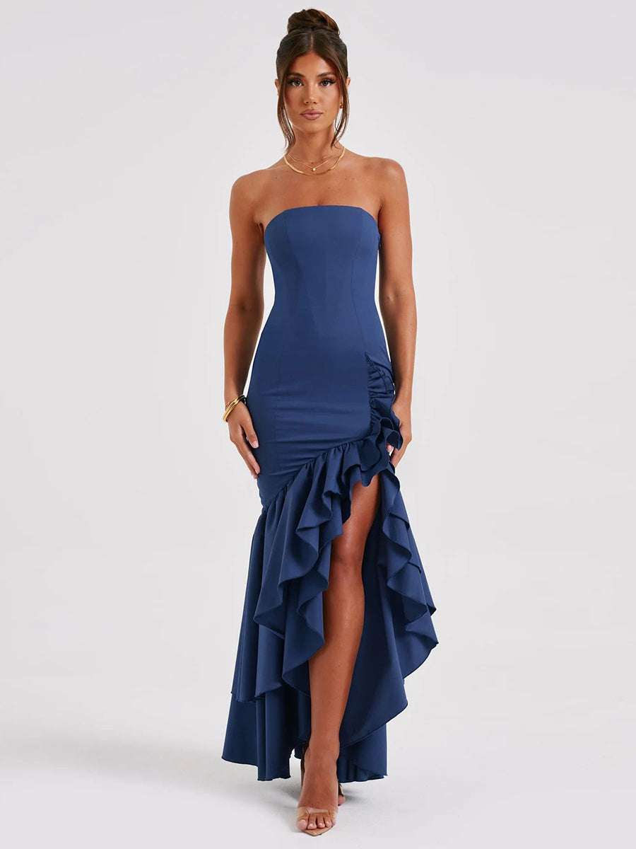 Wine Strapless Ruffled Asymmetrical Prom Dress XF05765