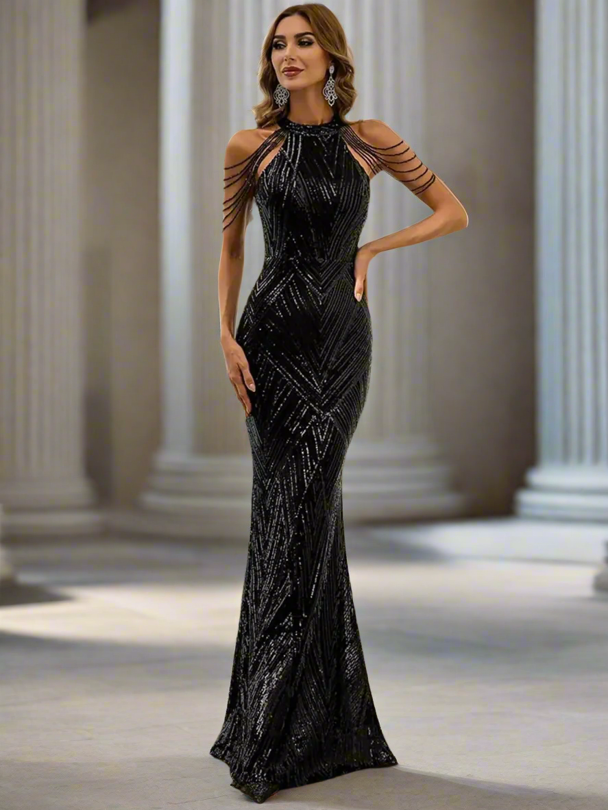 Bare your shoulders and let the beads do the talking! This cold shoulder cocktail dress combines effortless elegance with just the right amount of sparkle. The delicate beads and chain detailing catch the light beautifully, making you the star of any event. Perfect for cocktail parties, date nights, or whenever you want to feel absolutely fabulous. Slip it on and prepare for compliments!