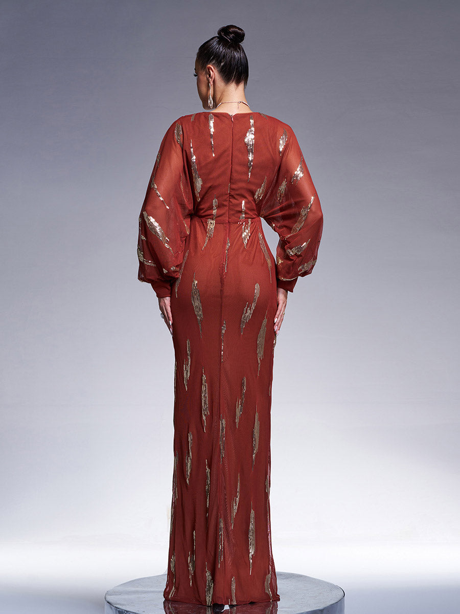 Elegant Lantern Sleeve Sequin Prom Dress GM00626