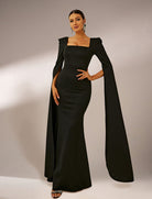 Formelles schwarzes Ballkleid mit quadratischem Ausschnitt und langen Ärmeln XJ878