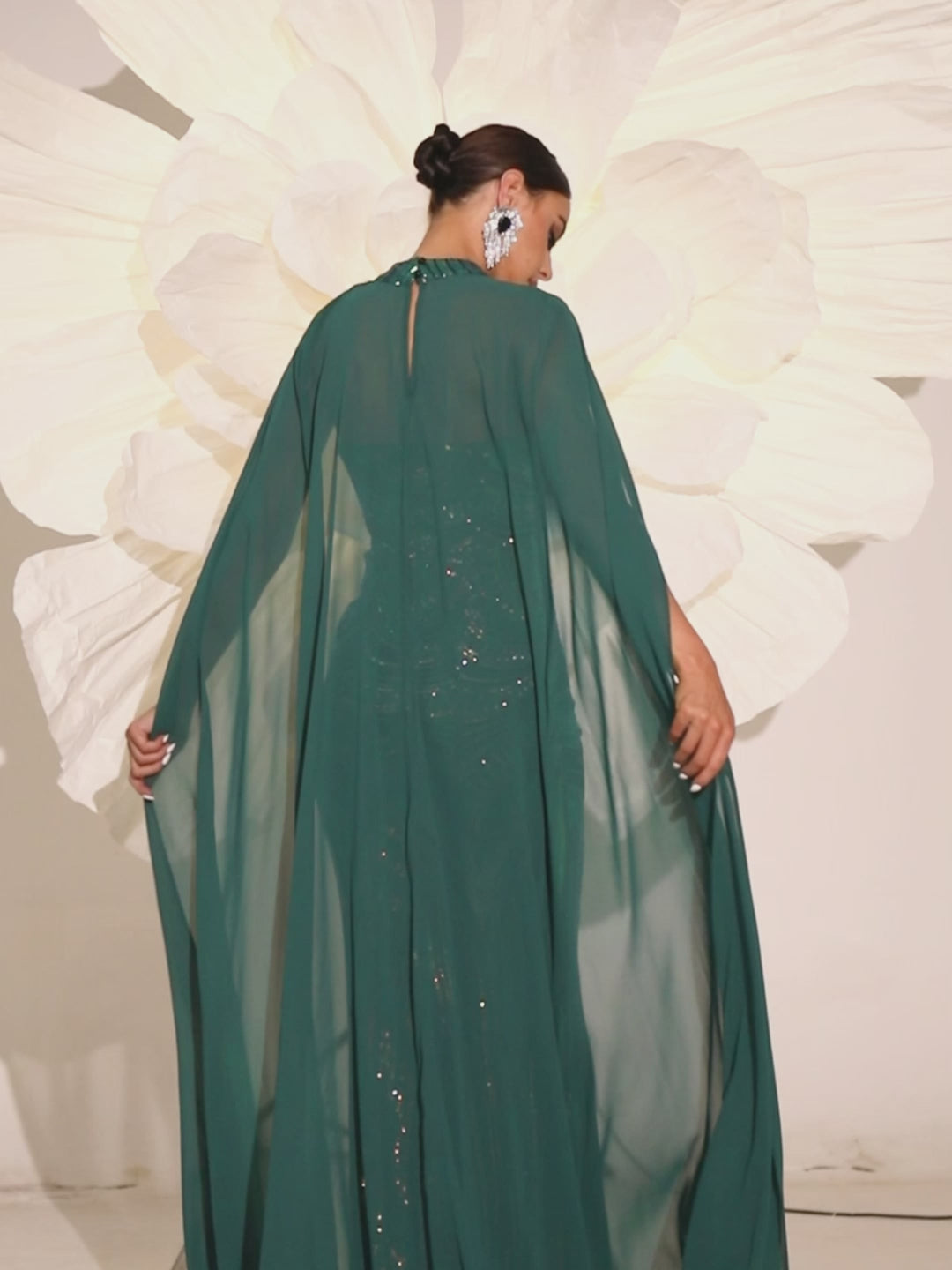 Indulge in luxury with our Cape Tube Top Sequin Dress Two Piece Set GM00259. This elegant evening dress features a classic green cutout mesh cape, adorned with shimmering sequins, to make you stand out in any crowd. The mermaid silhouette adds a touch of glamour, making it the perfect choice for any special occasion.