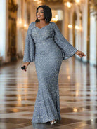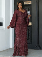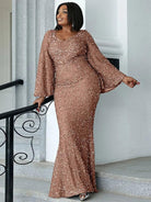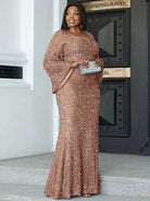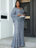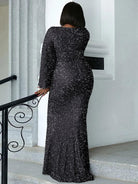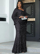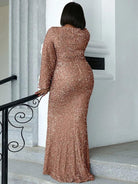 Dieses formelle Maxikleid mit langen Ärmeln und Pailletten im Meerjungfrau-Stil in Übergröße hat eine normale Passform und leichten Stretch für ein bequemes, schmeichelhaftes Tragegefühl.