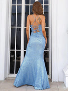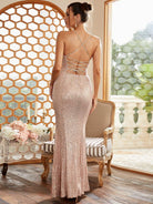 Abendkleid mit Schnürung und Spaghettiträgern und Pailletten am Rücken XH1182