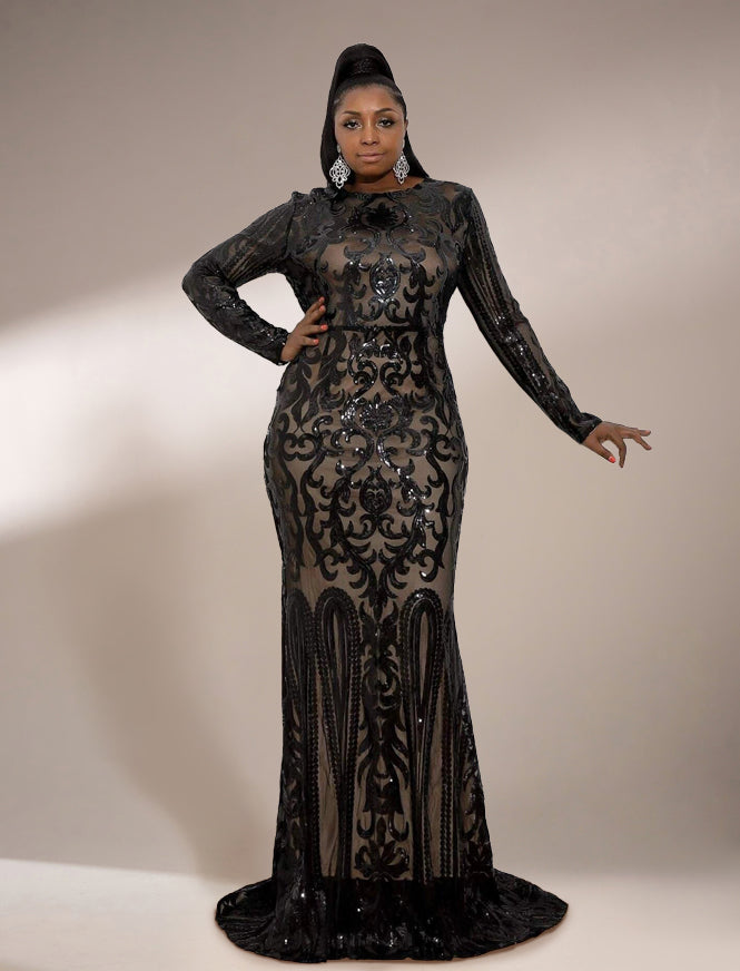 Plus Mermaid Hem Sequin Prom Dress P0017