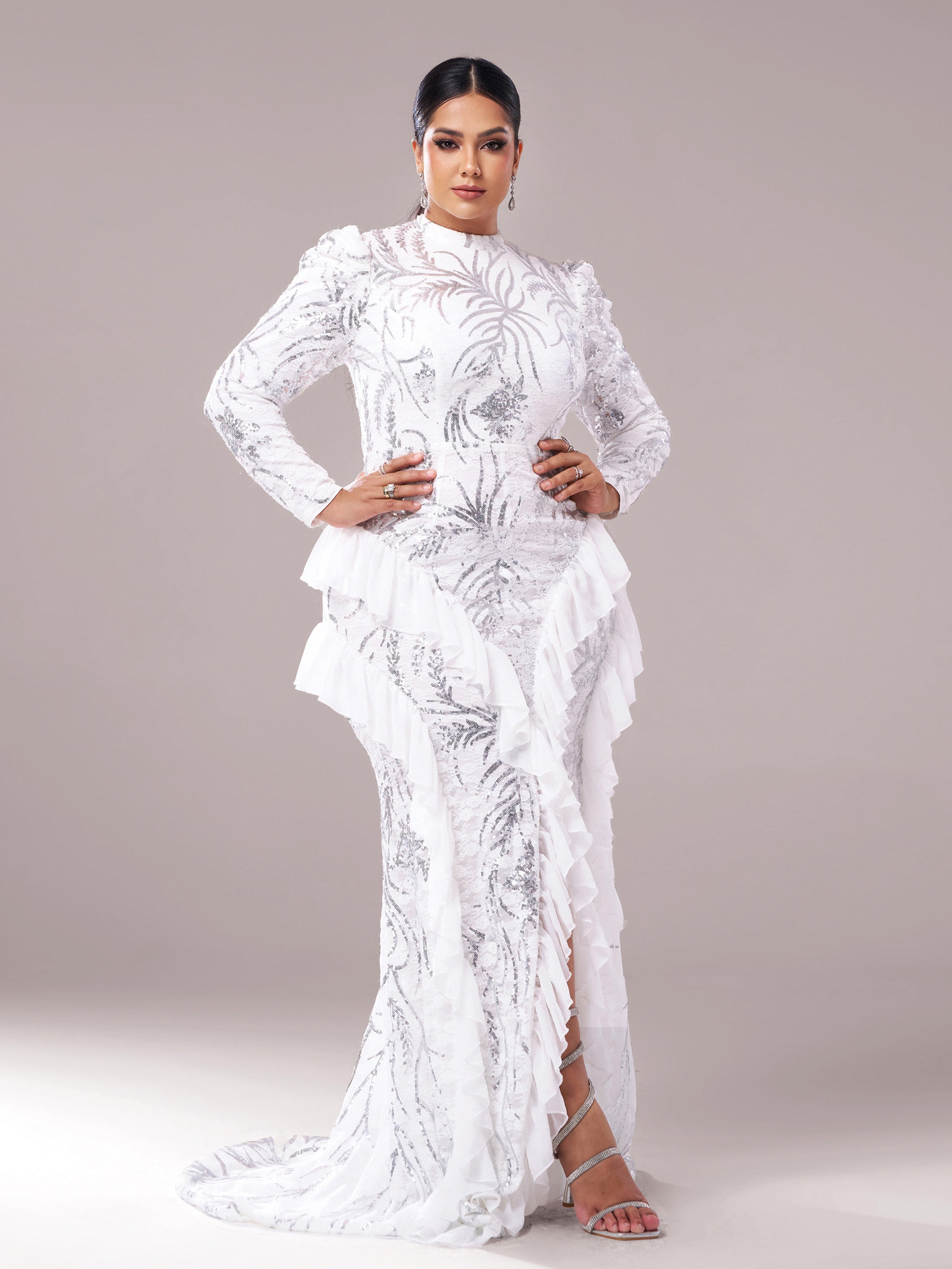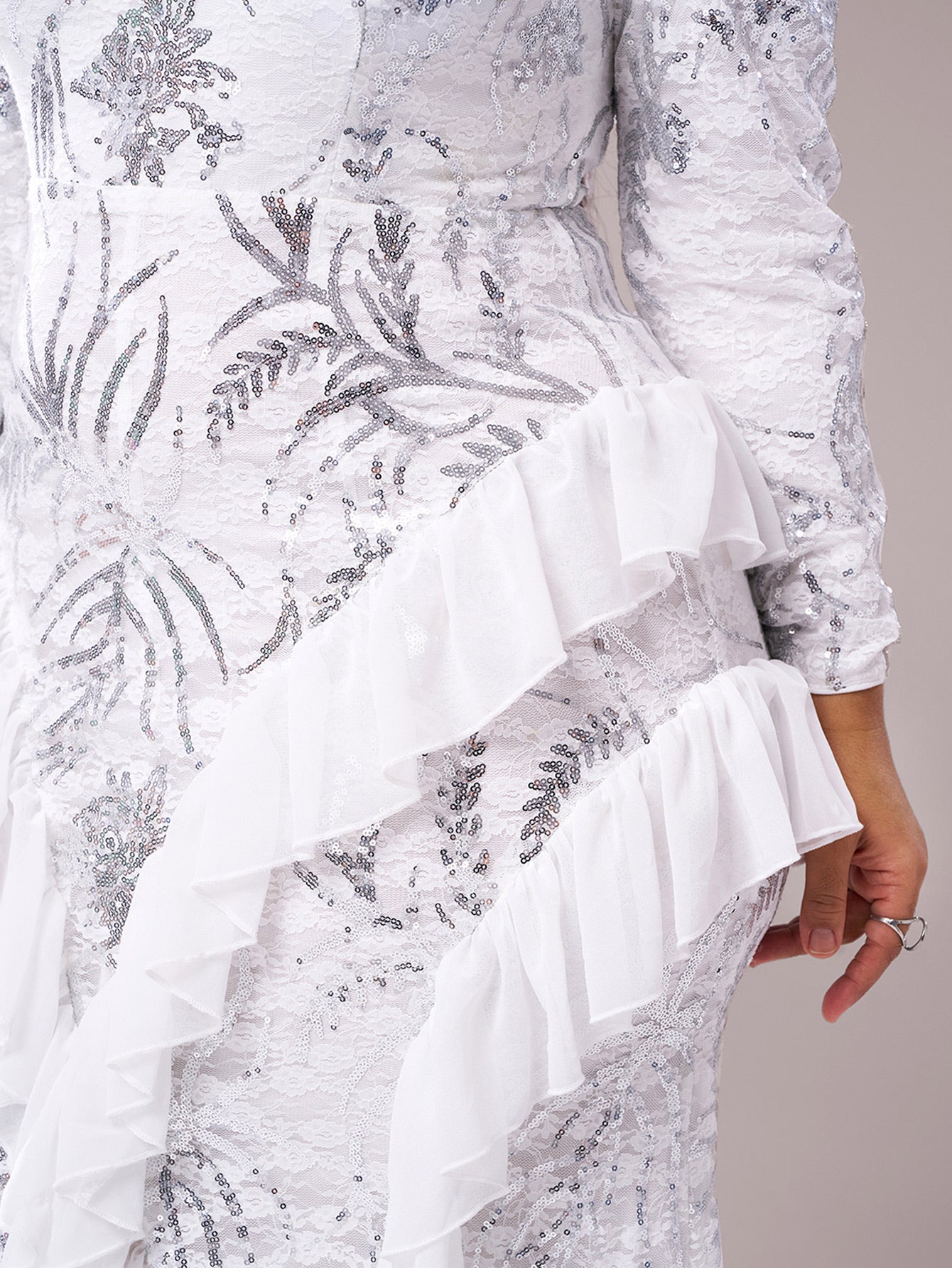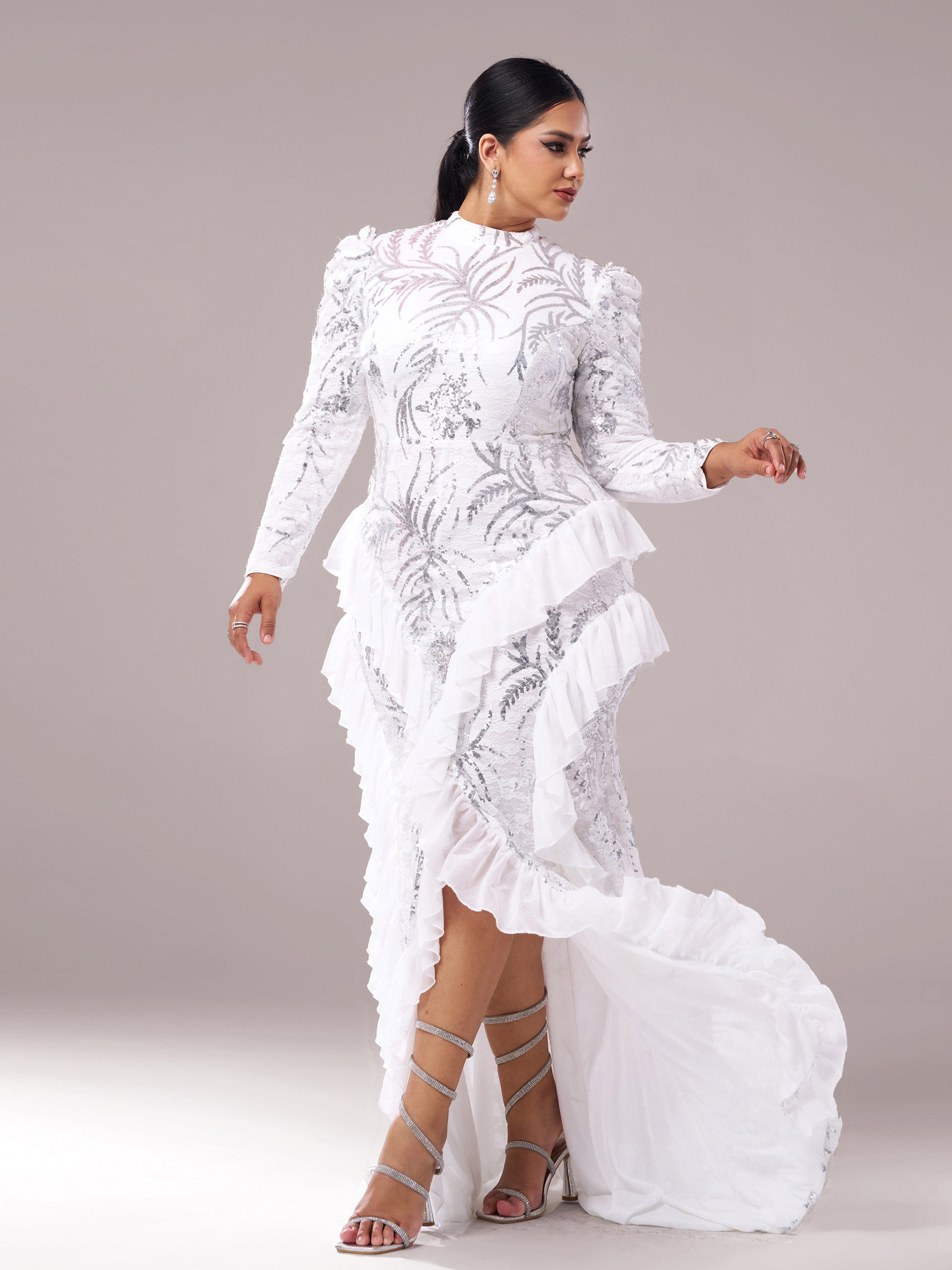 Elevate your style with our Plus Stand Collar Ruffled Irregular Hem Dress! Featuring a flattering stand collar and ruffled details, this dress exudes elegance and sophistication. The unique irregular hem adds a playful touch, making it perfect for any occasion. Look and feel confident in this stunning dress!