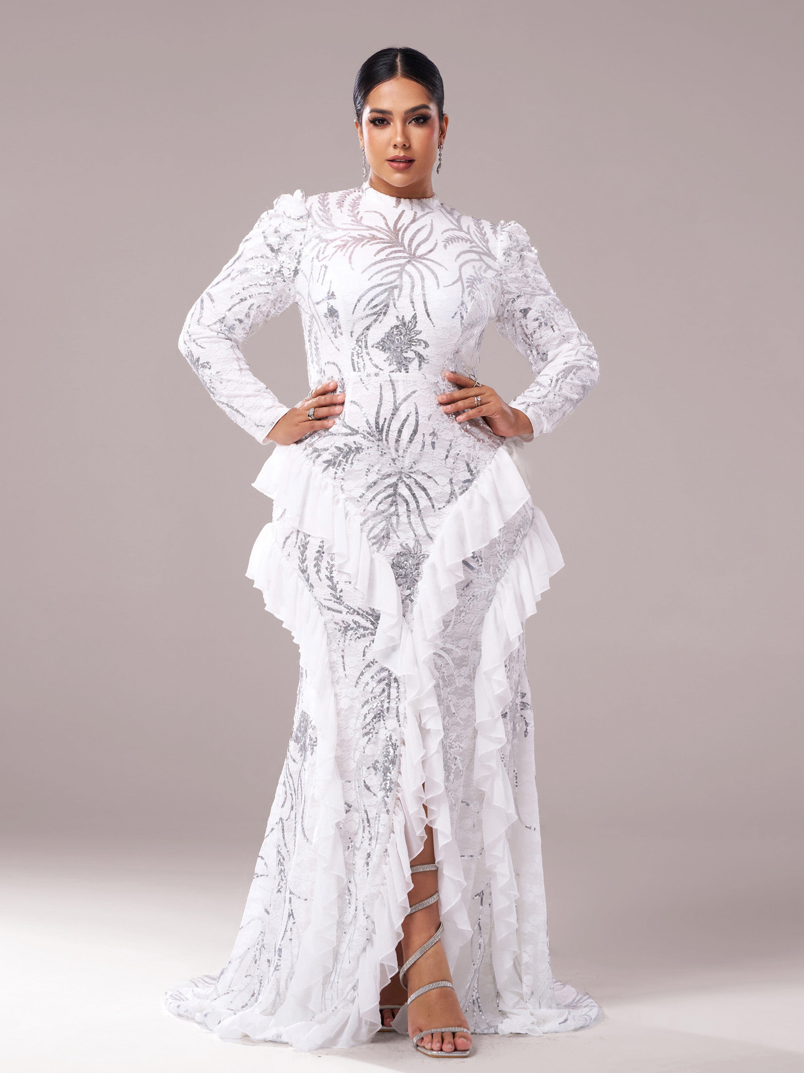 Plus Stand Collar Ruffled Irregular Hem Dress PRX70029