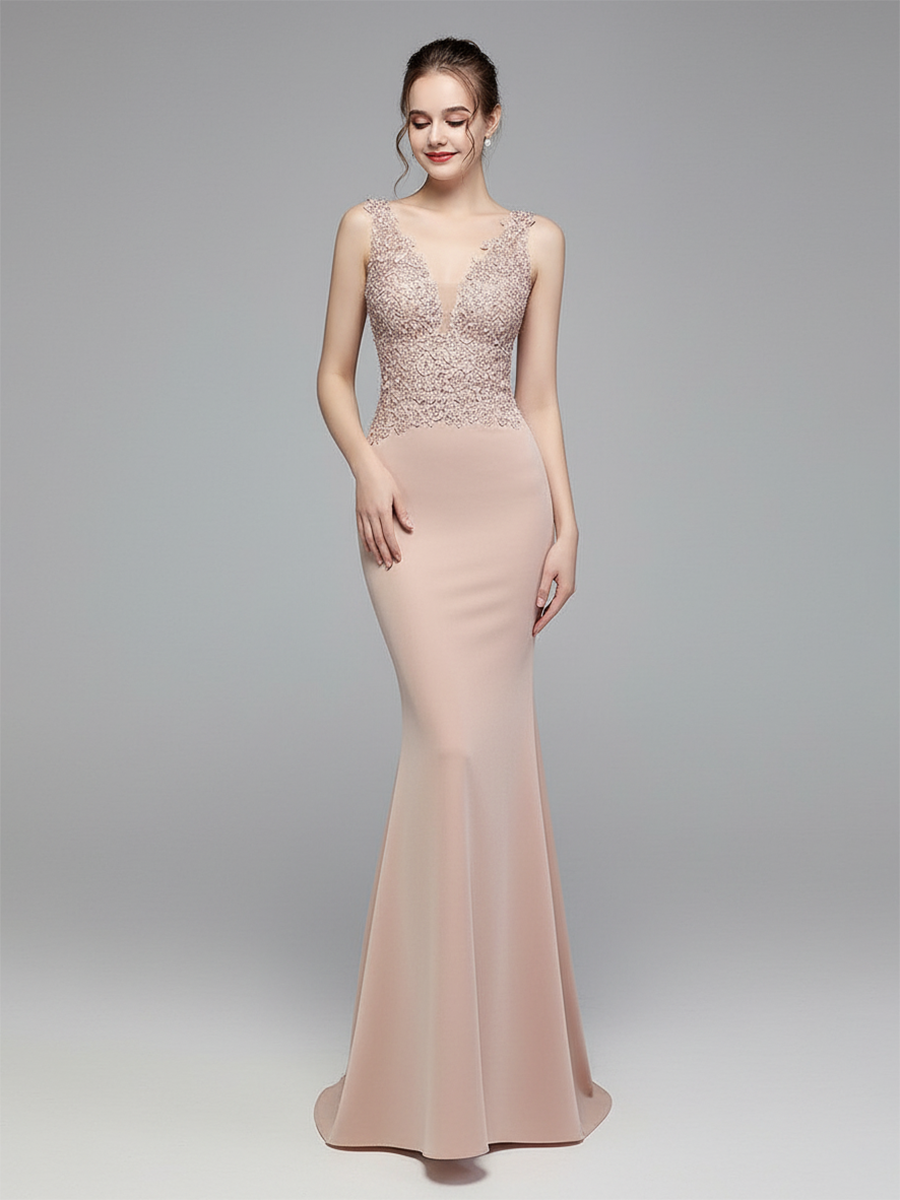 V-neck Sleeveless Embroidered Evening Dress MCW0951