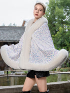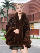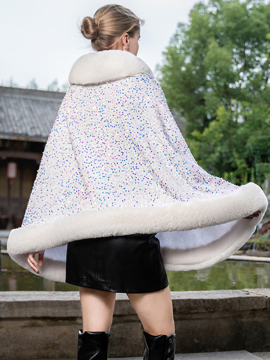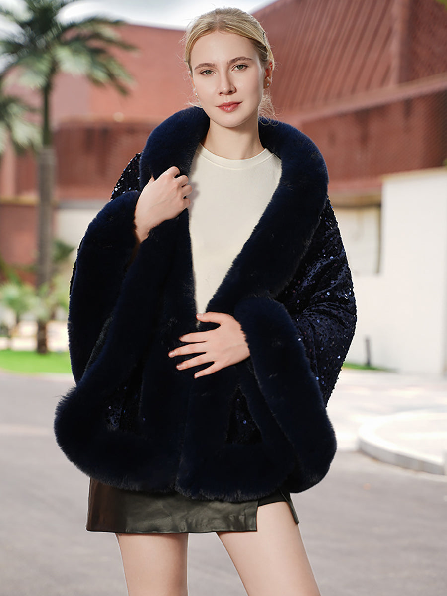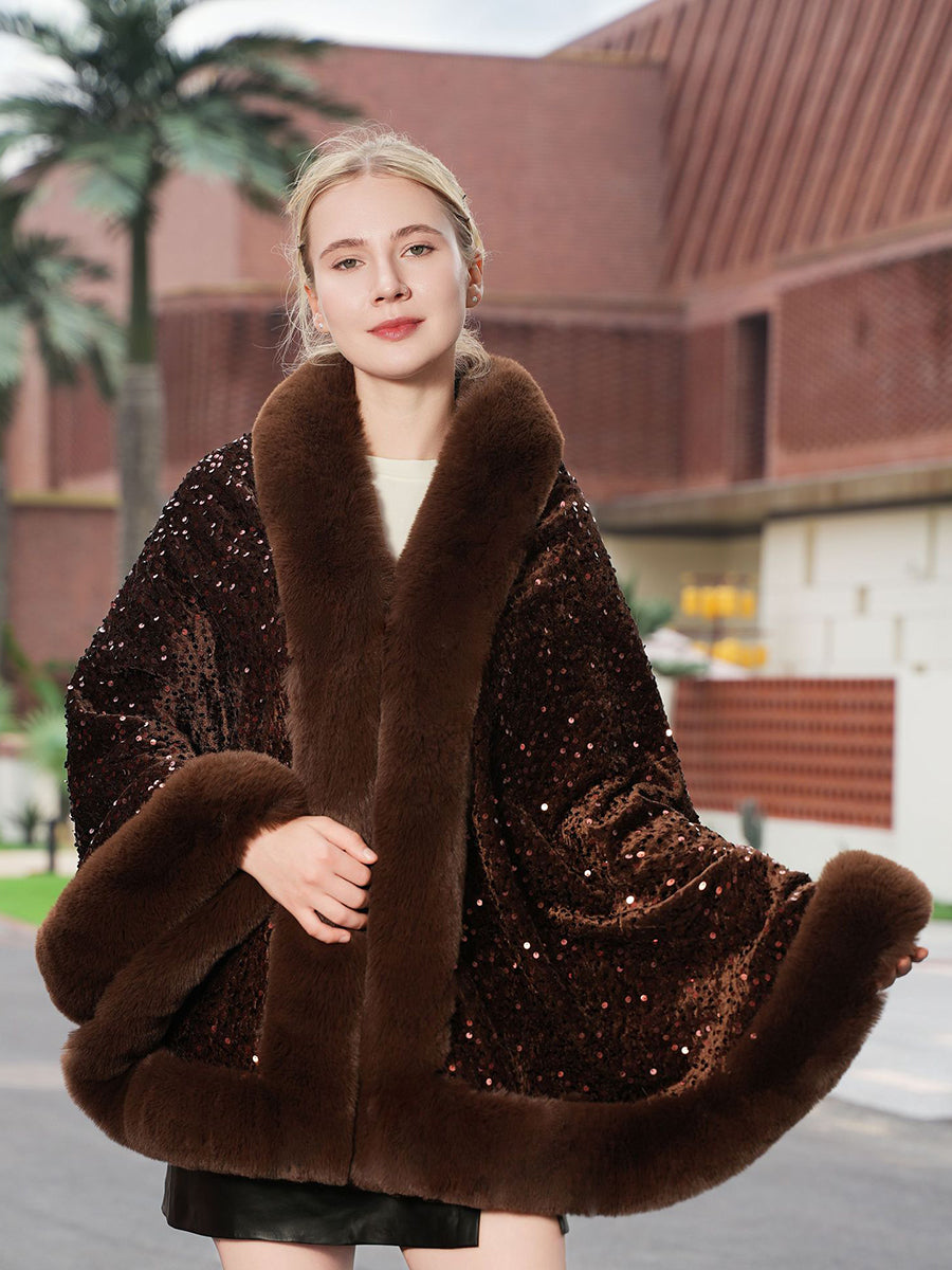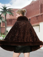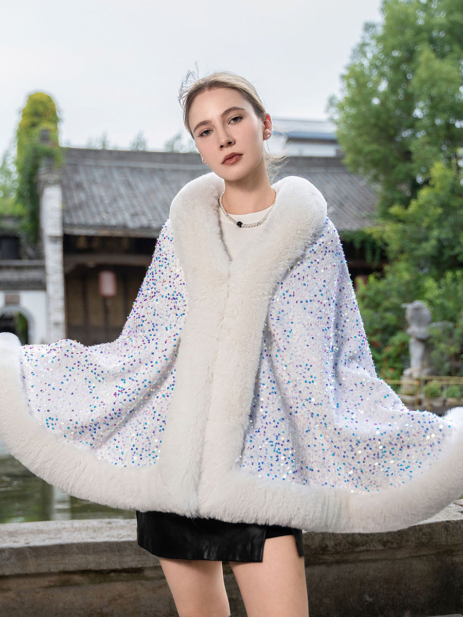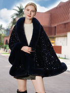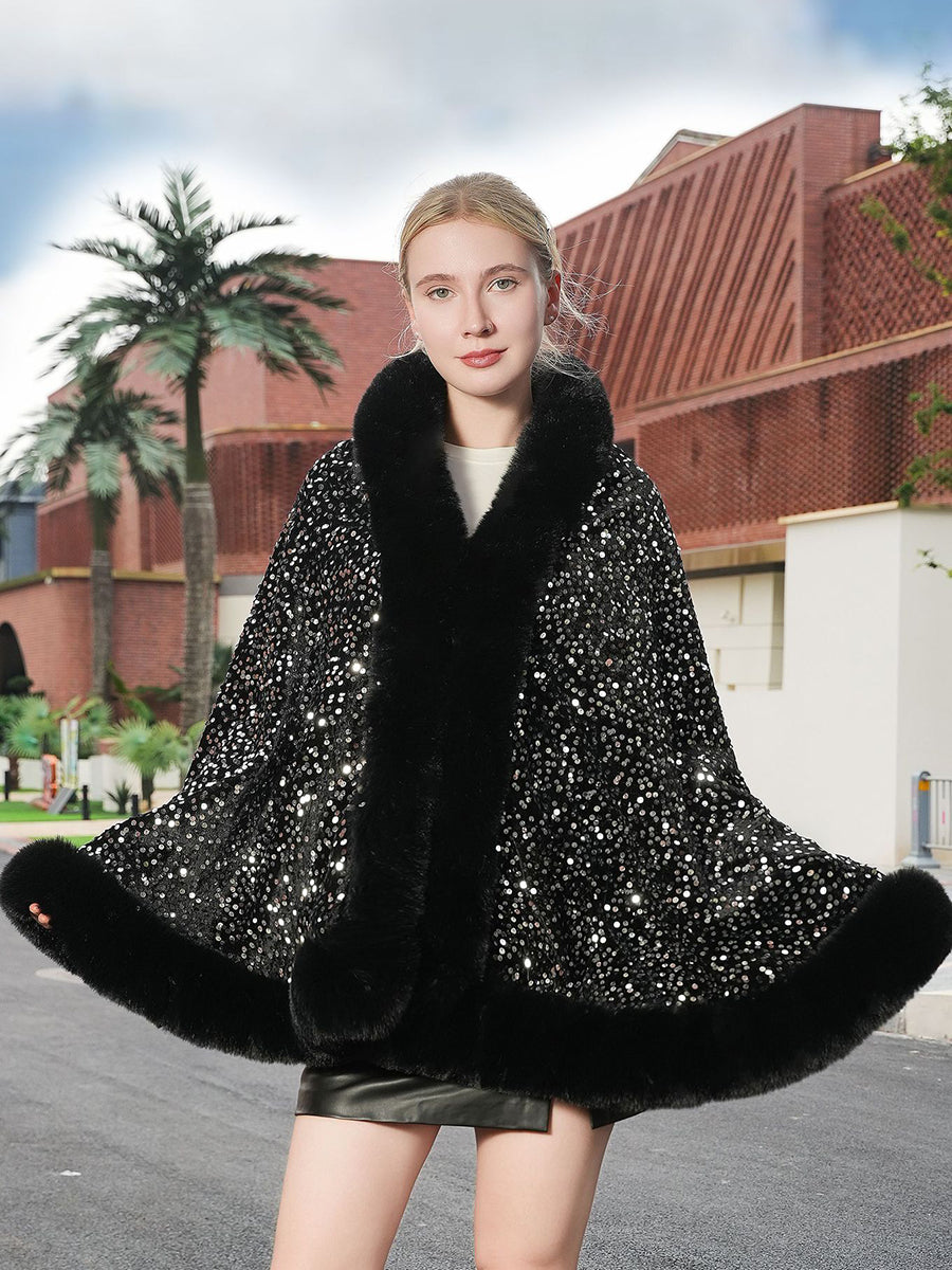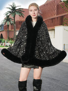 Sequin Solid Elegant Faux Fur Trim Cape Shawl MSF039