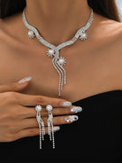 This elegant Sparkling Pearl Drop Crystal Rhinestone Necklace Set is the perfect piece to complete your look, featuring a cluster of Swarovski crystals and shimmering simulated pearls, the perfect accessory for a timeless classic.