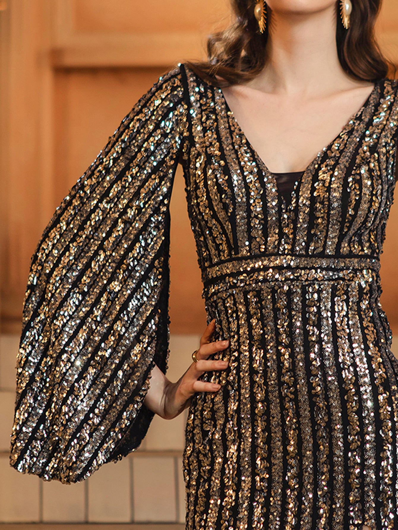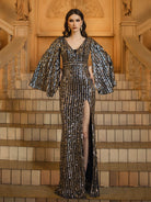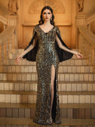 Cape Sleeve Slit V-neck Sequin Prom Dress GM00654