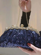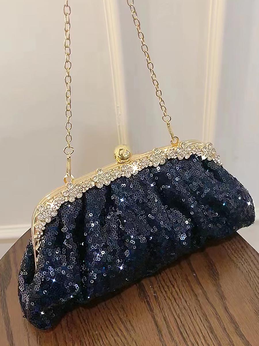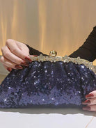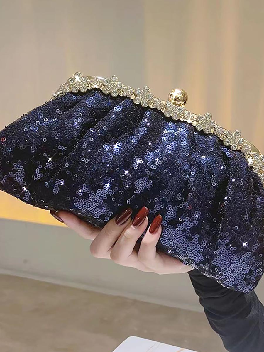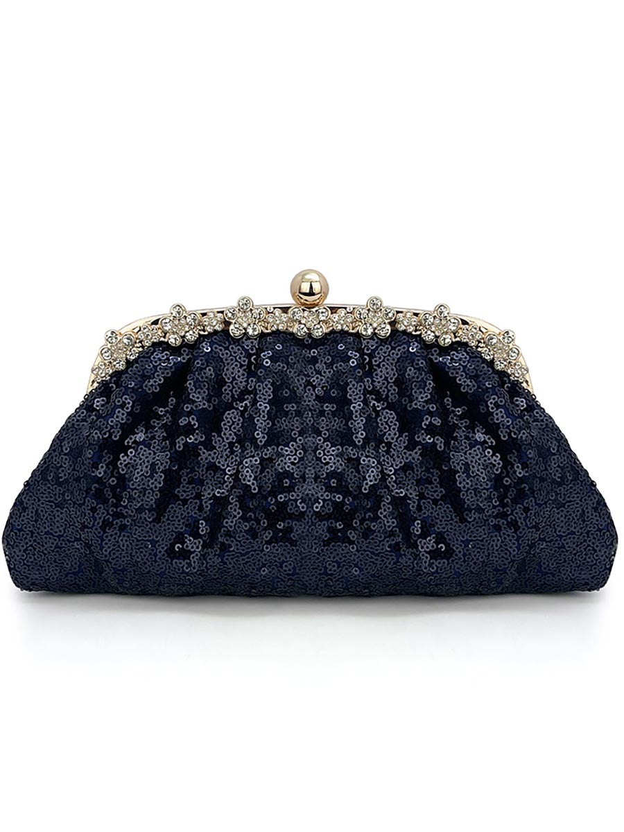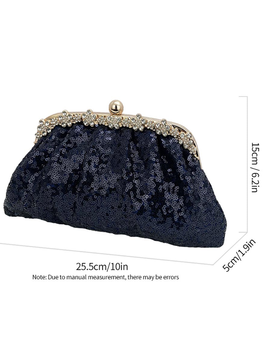 Navy Sequin Rhinestone Trim Ruched Clutch MNBF125
