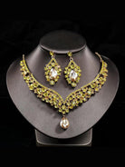 Inlay Pear Cut Stone Necklace Earring Set MRL1725