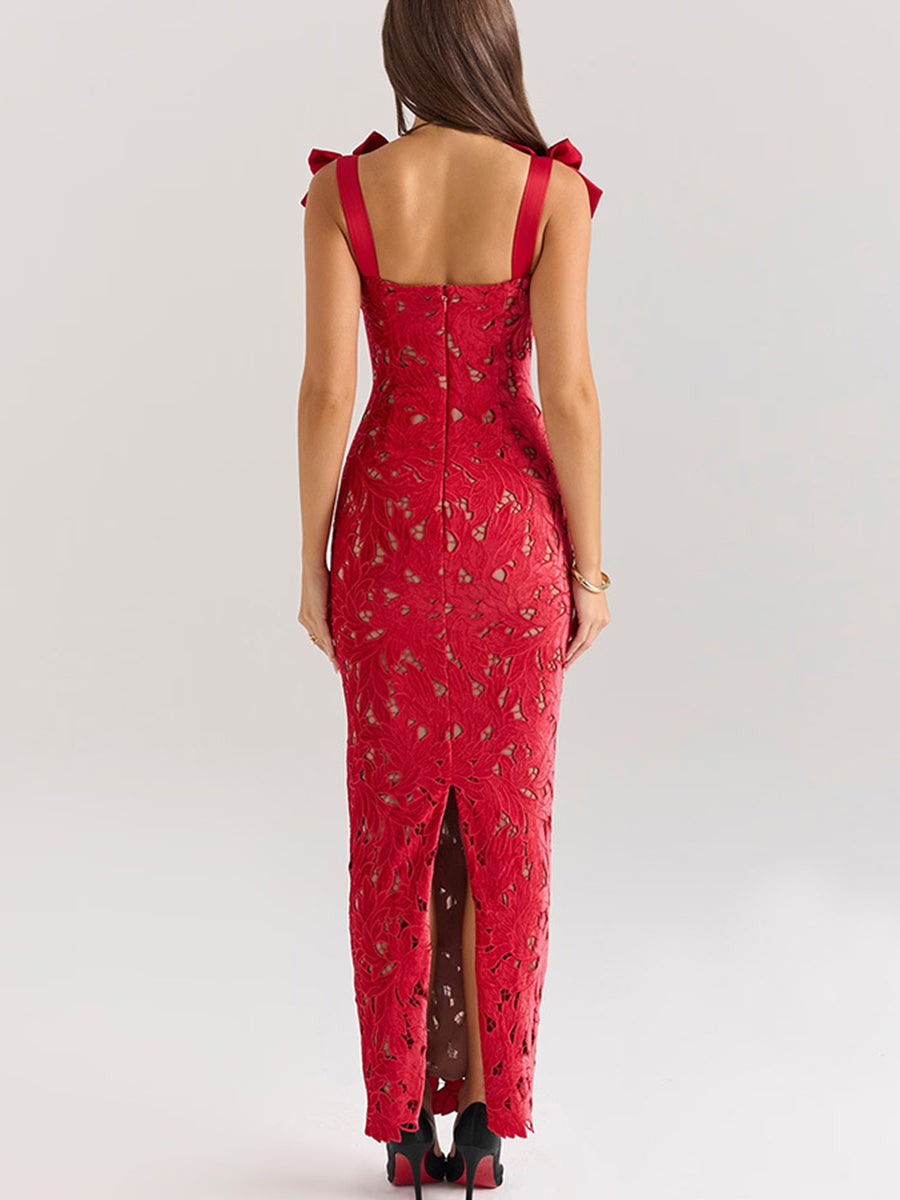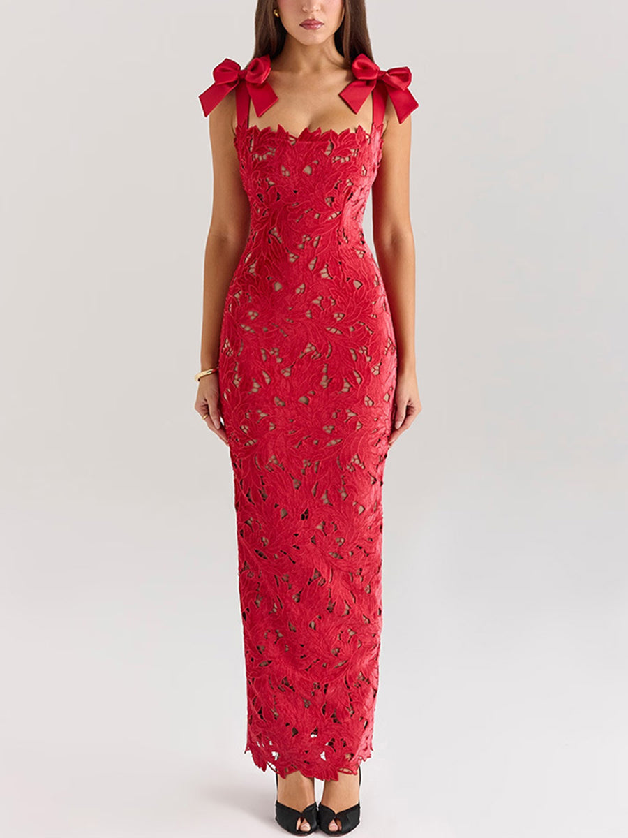 Knot Backless Crochet Cocktail Dress XF05775