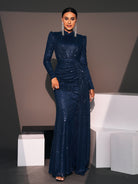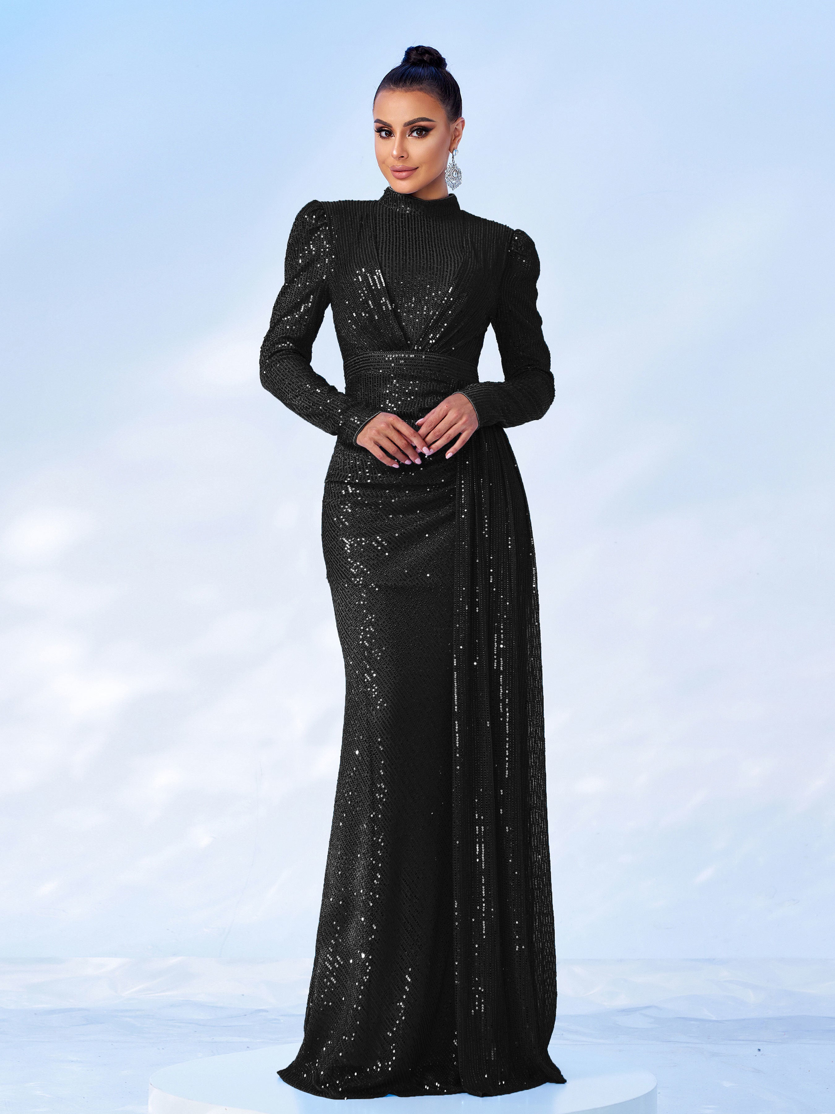 Stand out in style with our Full Cover Long Sleeve Brown Sequin Formal Dress! Show off your playful side with this quirky and fun dress, featuring a full coverage design and stunning sequin detailing. Whether you're heading to a formal event or just want to make a statement, this dress has got you covered.