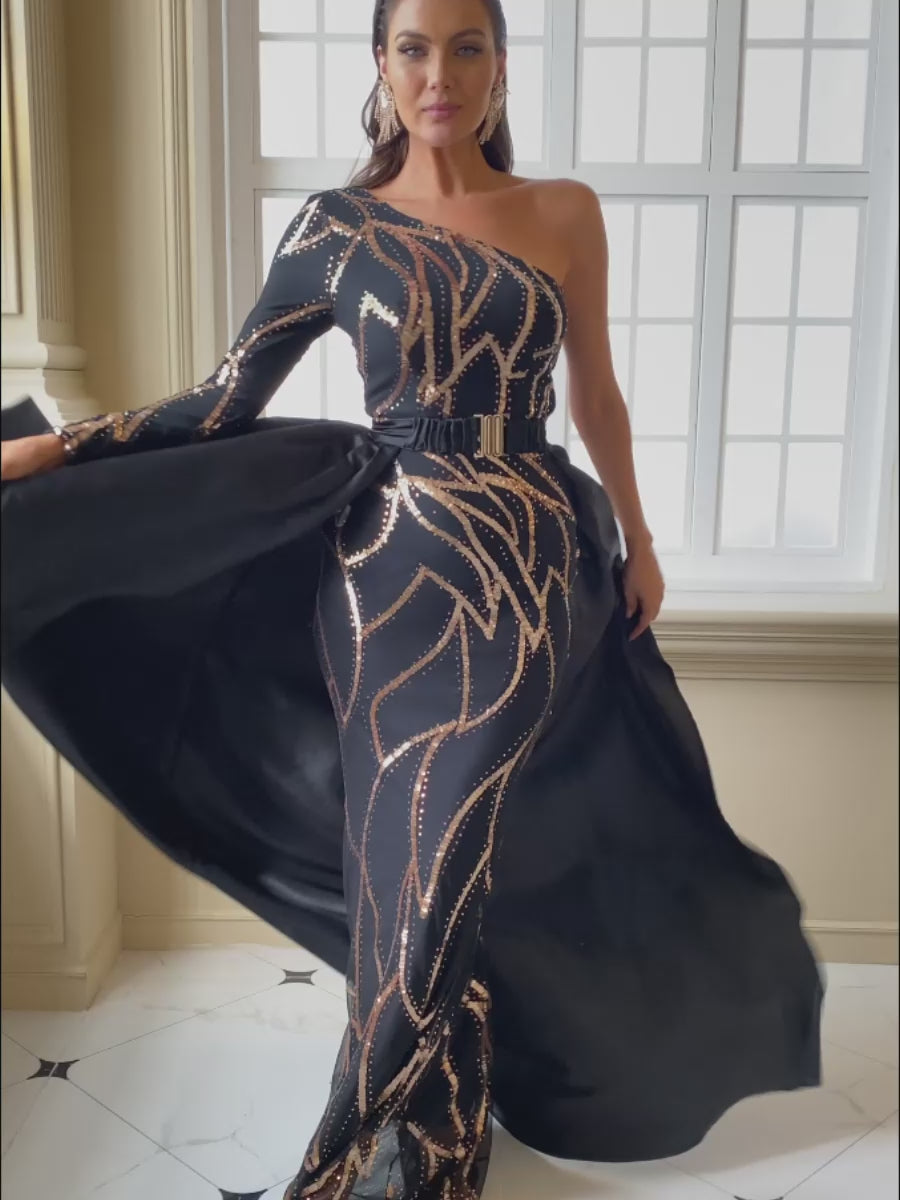 One Shoulder Cloak Sequin Prom Dress XH2172