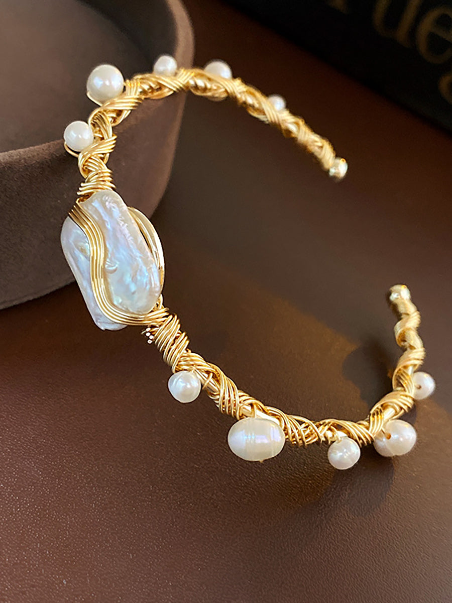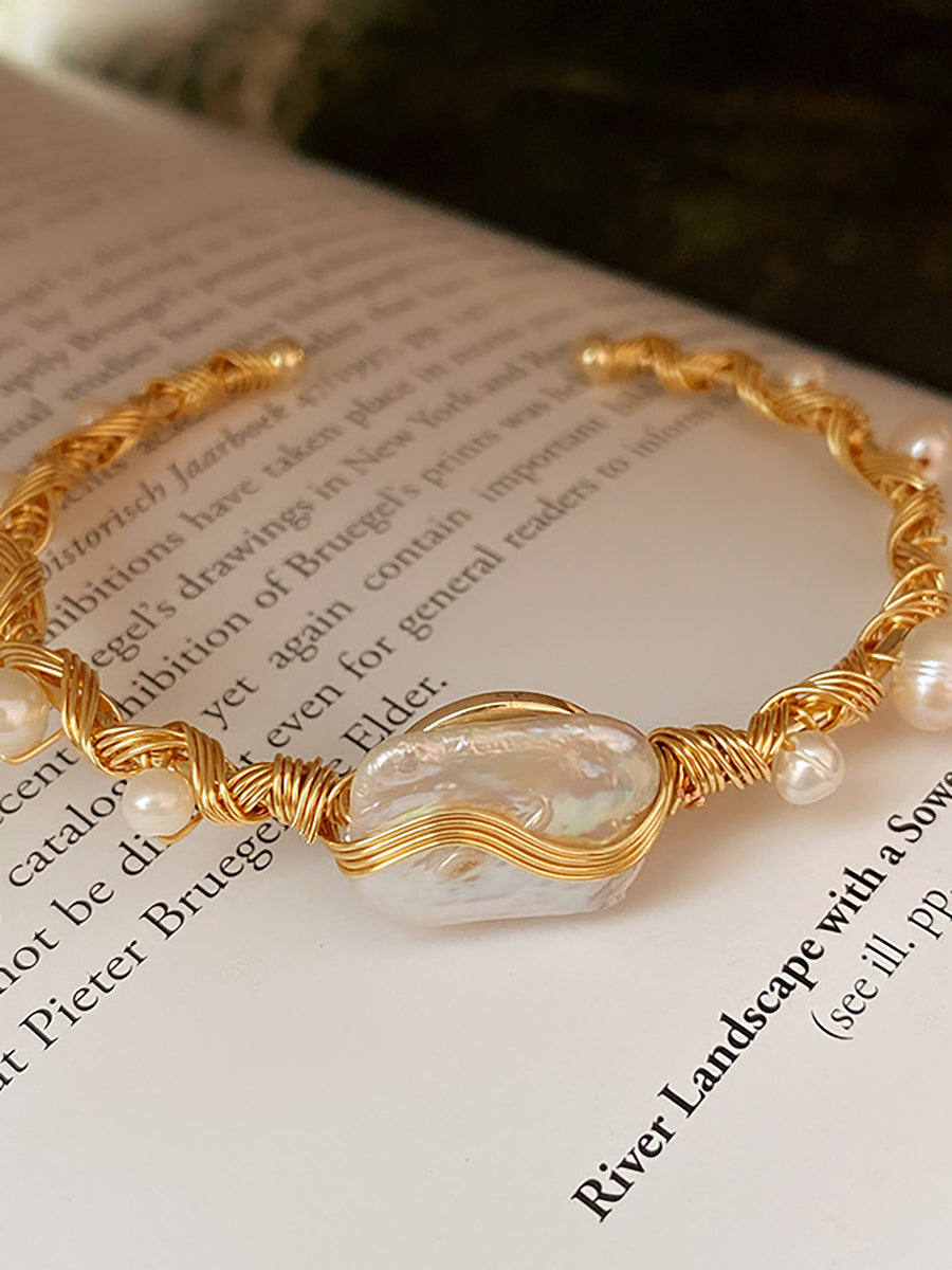 Baroque Pearl Gold Wire Cuff Bracelet MBS0128