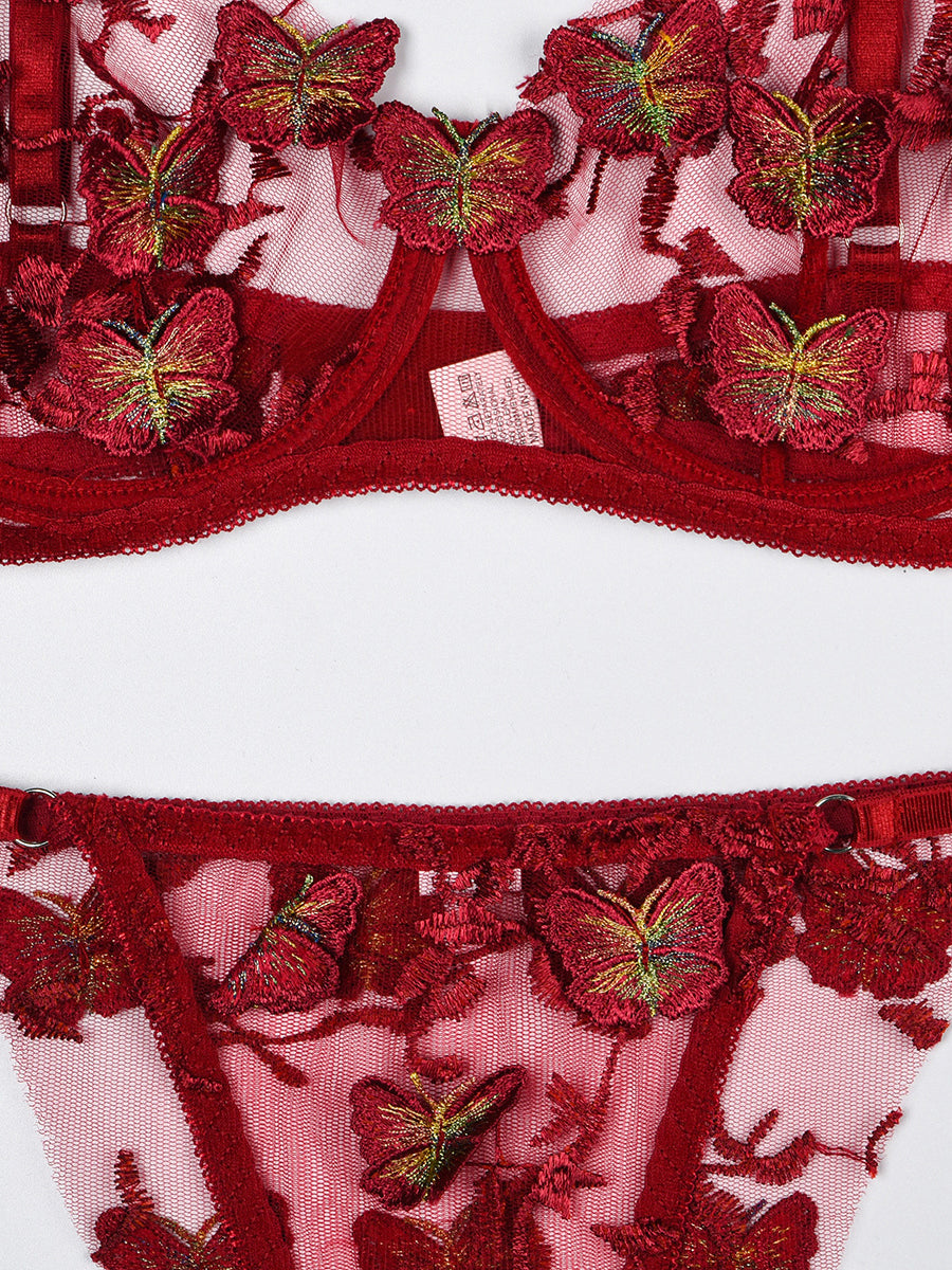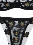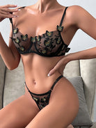 Black Appliqued Flower Sexy Two Set Lingerie MSL093