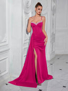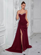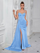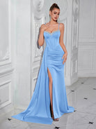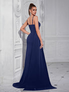 Navy Sweetheart Neck Corset Split Evening Dress XF05703